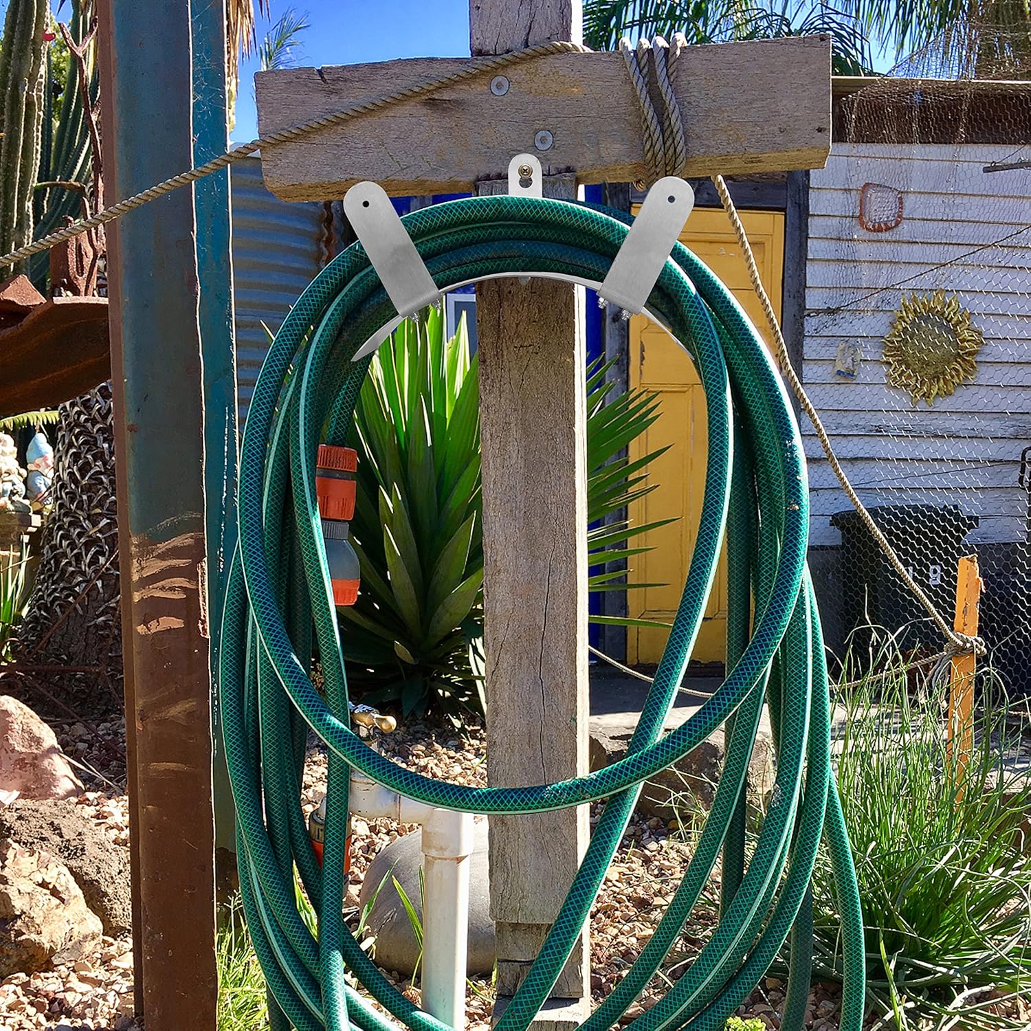 Gardzen Stainless Steel Hose Holder, Wall Mount Garden Hose Bracket Hanger for Outside
