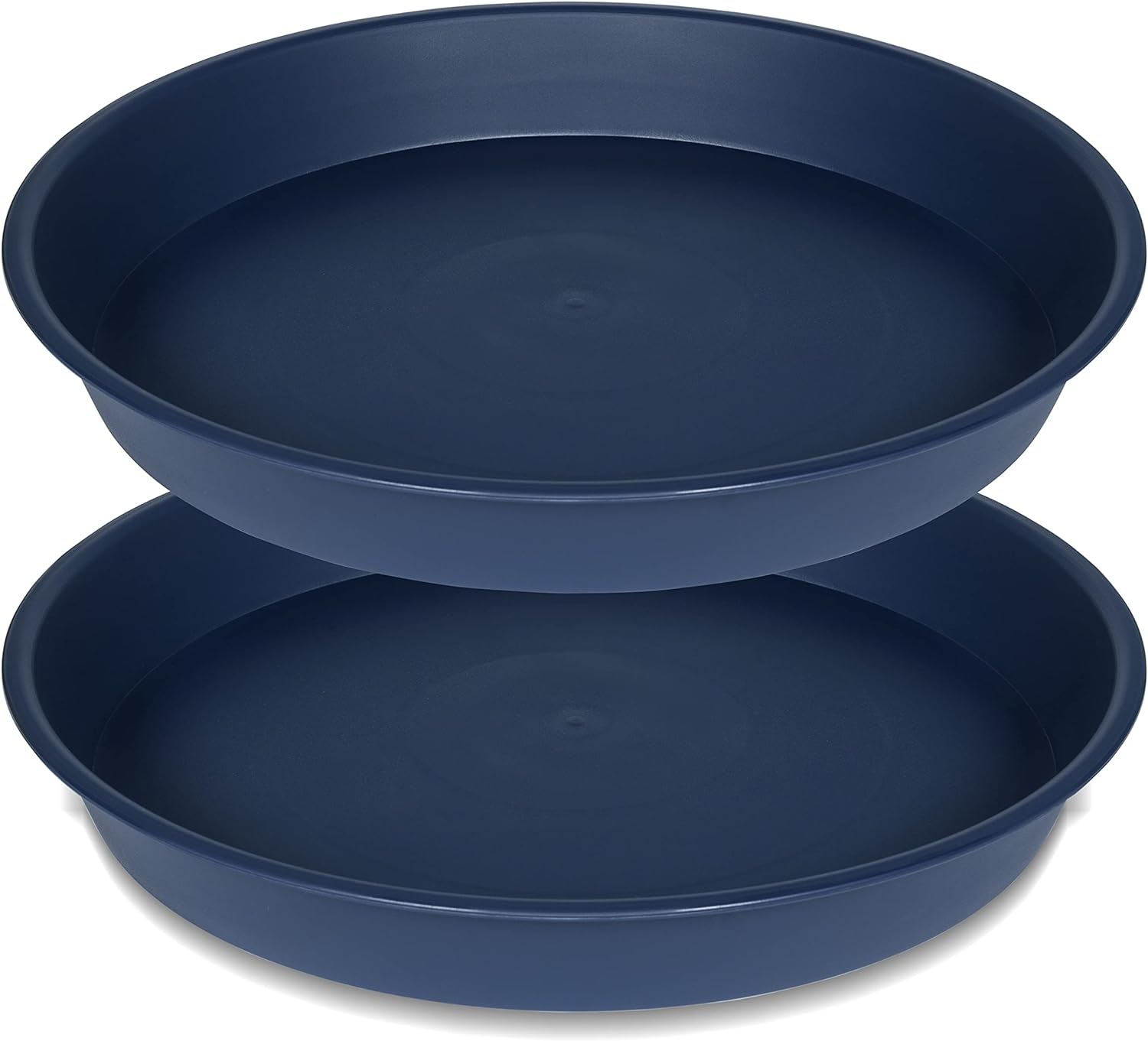 2 Pack of 16 17 inch Plant Saucer (15 inch Base), 2.3" Depth, Plant Trays for Pots, Plastic Plant Saucers for Indoors, Flower Pot Drip Trays for Planter (17", Blue)