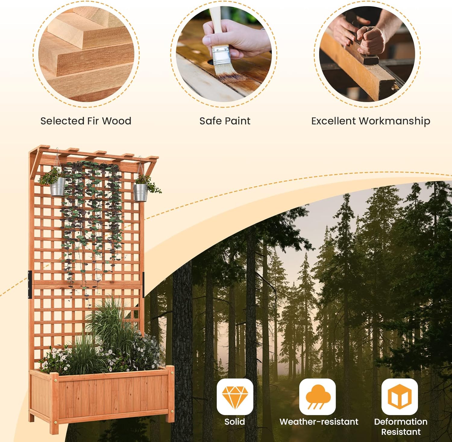 - [Trellis & Extended Roof]: Designed with tall trellis and extended roof, the planter box with trellis provides sufficient space to grow climbing plants, hang basket plants and display decorations. Therefore, it will promotes healthy growth of plants and yard beautification.