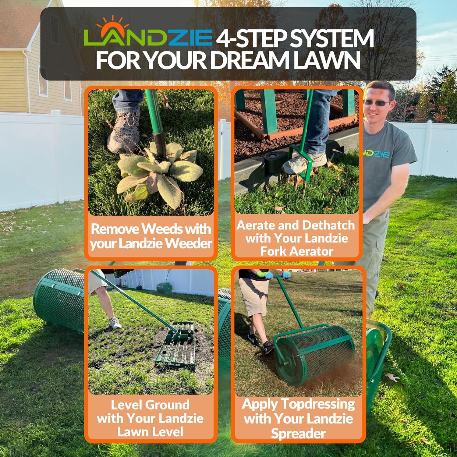 - HAVE THE LAWN OF YOUR DREAMS: Revitalize your lawn this season by using the Landzie Fork Lawn Plug Aerator to remove compacted soil and thatch and promote healthy grass growth throughout. Aerator coring your lawn encourages healthy root growth, enhances resistance to drought and flooding, and reduces the need for excessive amounts of fertilizer. USE your Landzie Soil Aerator with the Landzie Spreader (B07ZQSV81S) and the Landzie Lawn Level (B095KSKXPQ) for a lush and level lawn this season.
