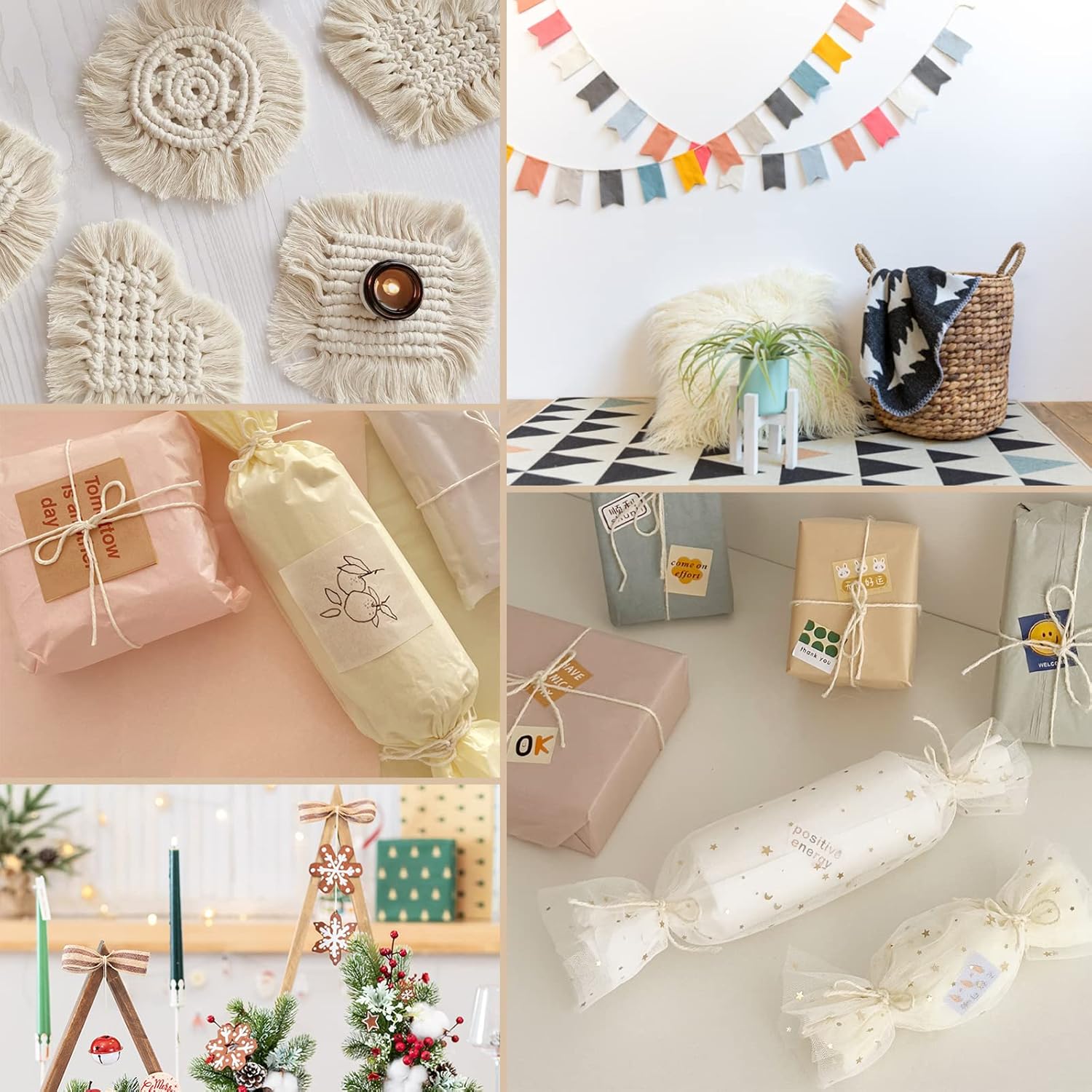 - WHAT YOU GET- Package includes 3 pack of beige cotton strings, each roll is 328 feet long and 2mm thick in diameter, 984 feet long twine in total, rich quantity for your different needs.