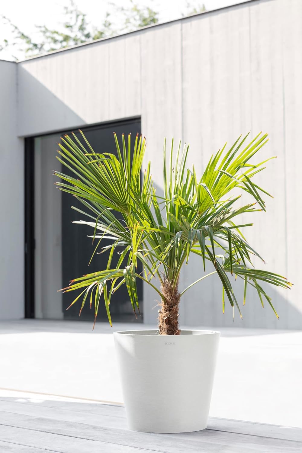 Ecopots Amsterdam Durable Modern Round Indoor/Outdoor Recycled-Based Composite Flower Pot Planter, Pure White, 16"