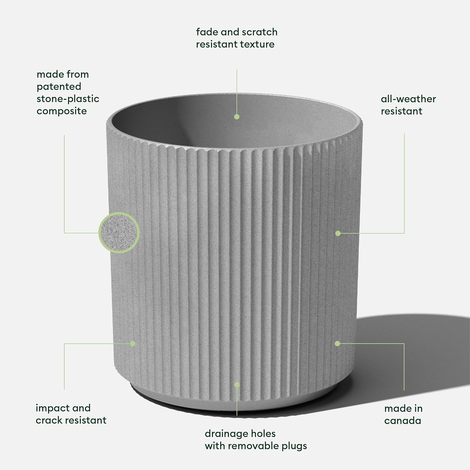 - DURABLE MATERIAL: Made from a plastic-stone composite, the Demi planter has a subtle textured finish and is all-weather resistant to cracks, scratches, UV and fading; perfect for hot or cold climates ranging from -20 to +120 degrees