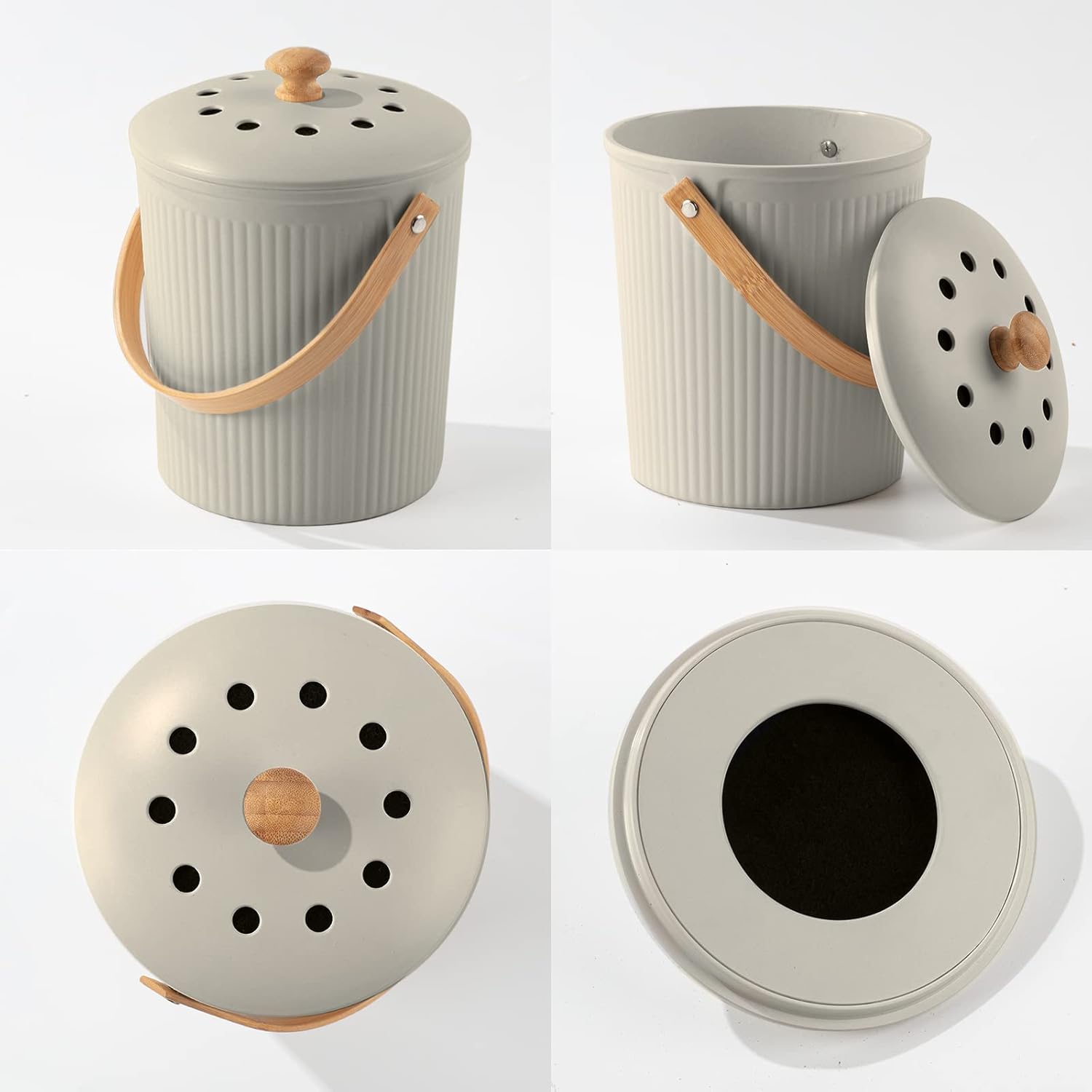 Compost Bin Kitchen, LALASTAR Countertop Compost Bin with Lid, Made of Sustainable Bamboo Fiber, Odorless Indoor Compost Bin, 1 Gallon, Grey