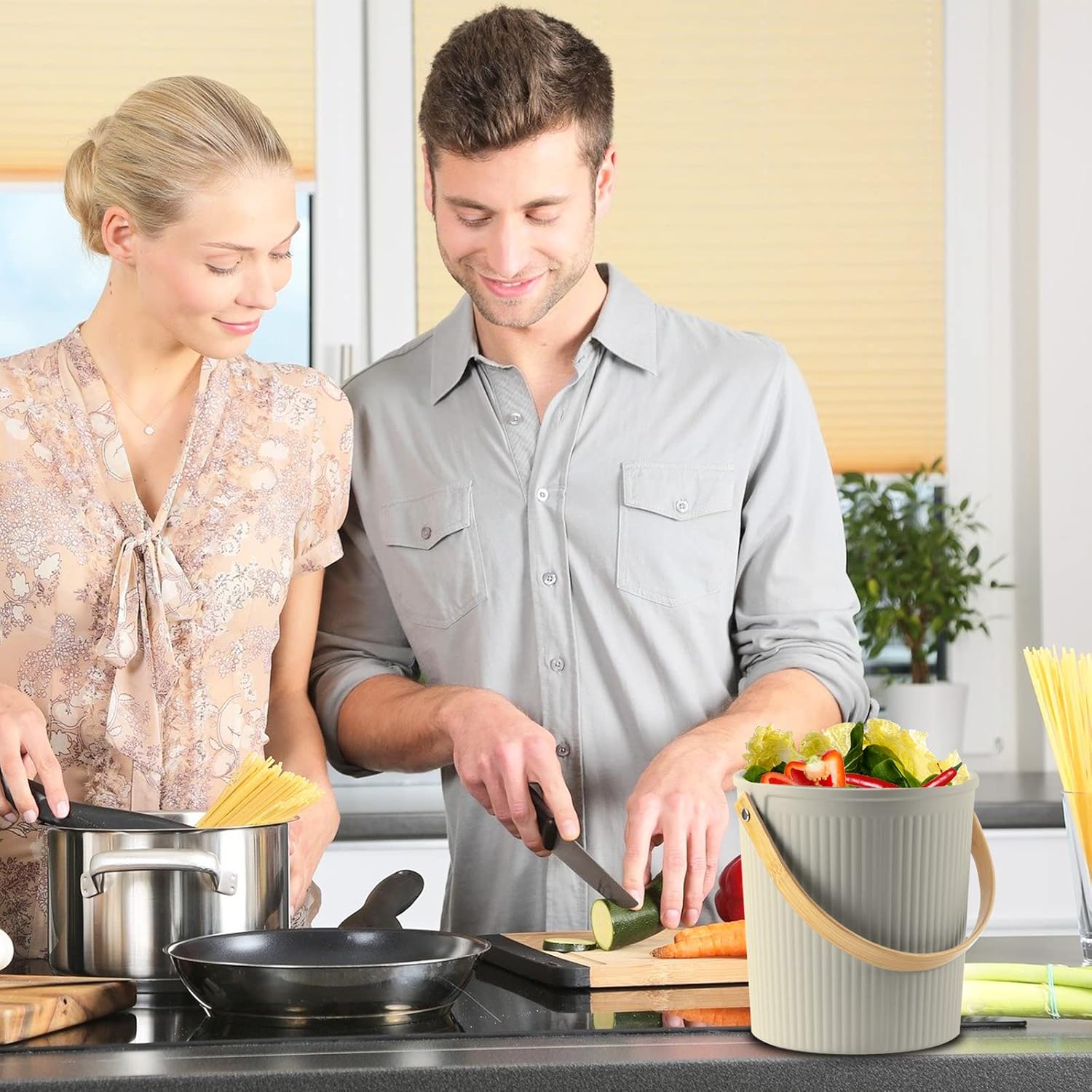 - Practical: Store your food scraps, vegetable peelings, tea leaves, flowers, coffee grounds and other compost materials with this compost bucket. Never waste your food scraps again and create your own low carbon rich compost for your garden.