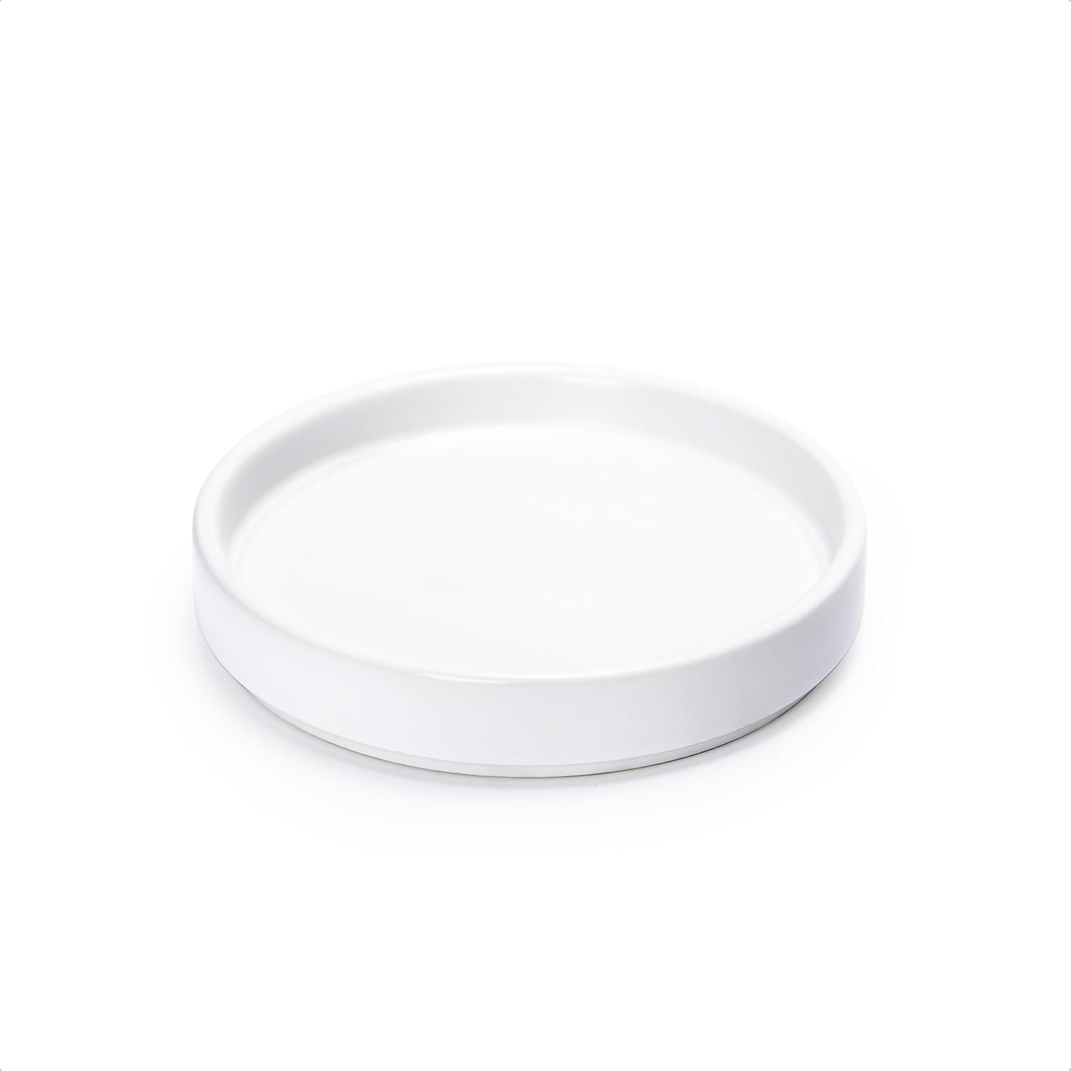 D'vine Dev Modern Round 5.4 Inch Ceramic Plant Pot Saucer, Planter Pot Drainage Tray for Indoor Plants, Matte White, 97-T-A-2