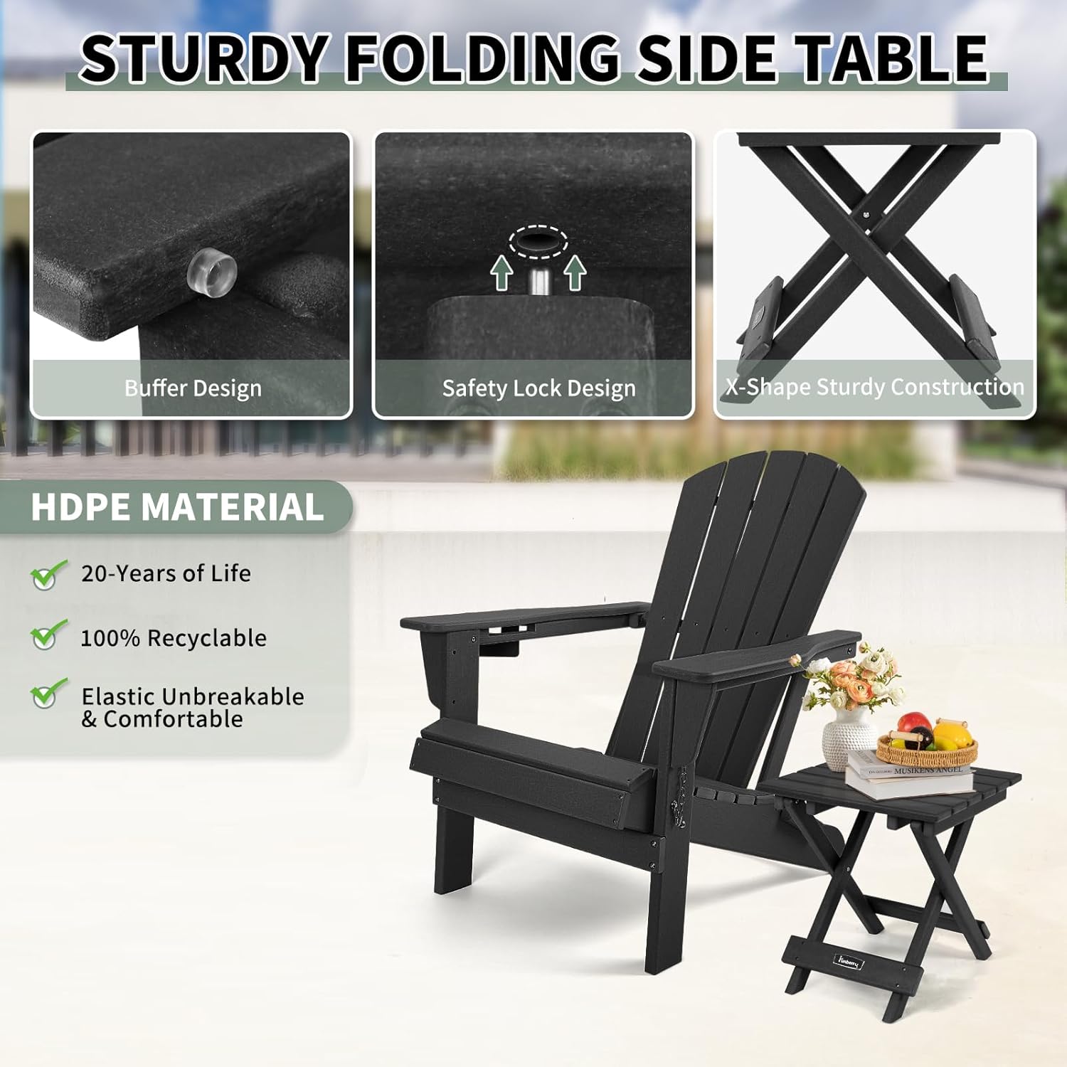 FUNBERRY Outdoor Folding Adirondack Side Table, Portable No Assembly Patio End Table HDPE All Weather