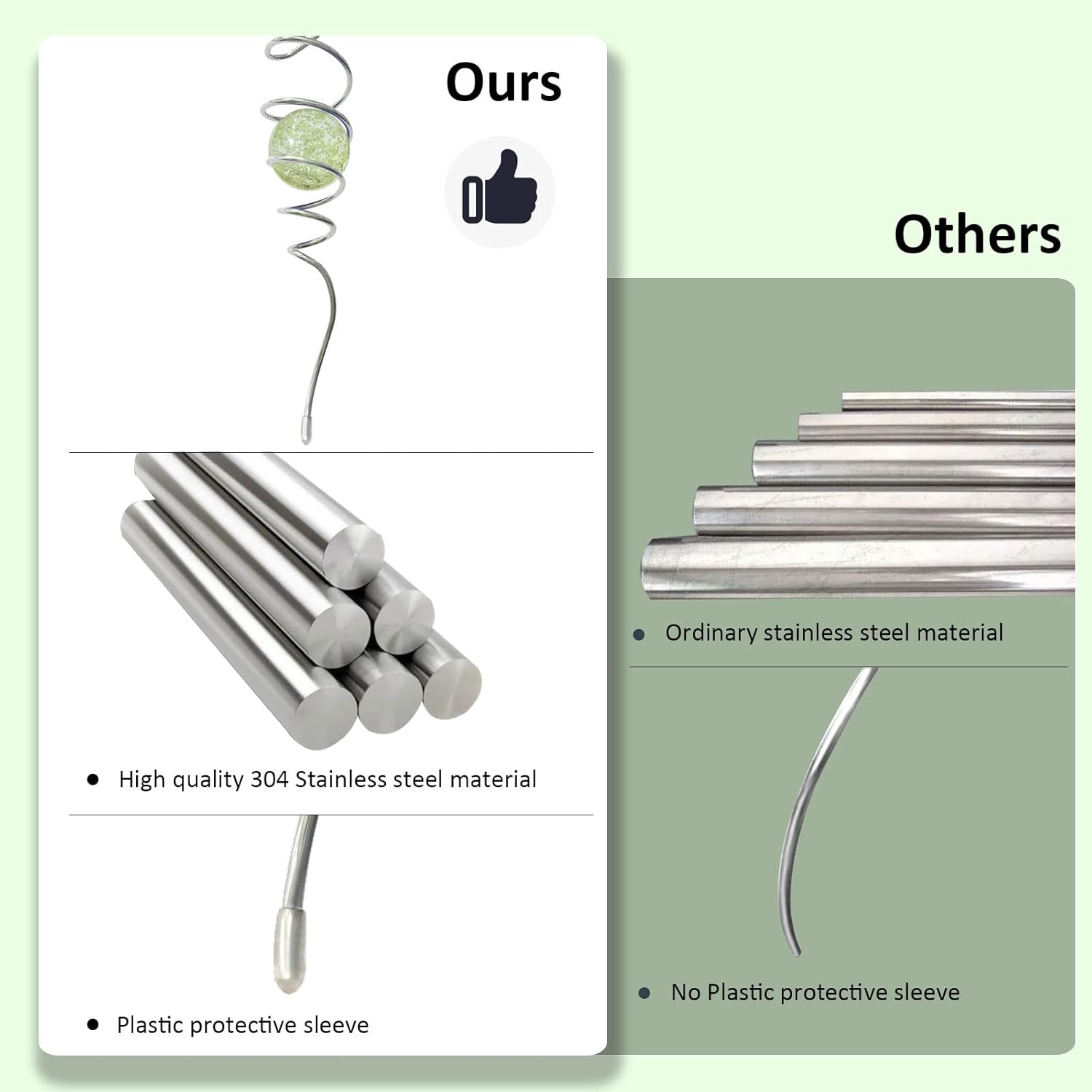 - 【High Quality】11inch height spiral tail made of #304 stainless steel wire,the 2inch colored ball made of pure solid color glass material,have good weather resistant,no fading under sunshine.Better quality than iron material with nickle plating and painting color glass ball in the market.