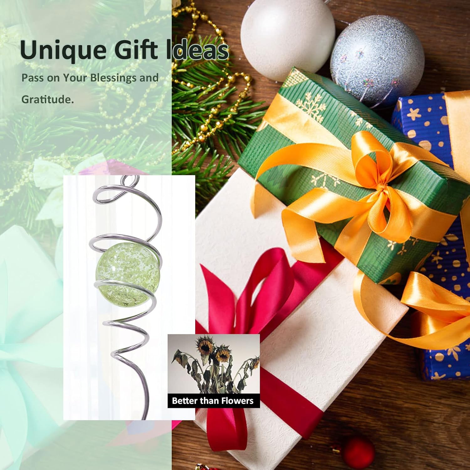 - 【Easy To Position】The Wind Spinner Stabilizer Spiral can't spin by itself ,if you want to make it spin like the video ,need add 1pc motor (not include) ,or combine it with a wind spinner or any rotatable hanging ornament to help it rotate. Come with 1pc 2 inch colored glass orb(not paint), 1pc silver color spiral tail twister,and 1pc swivel hook accessory, ready to hang and enjoy.