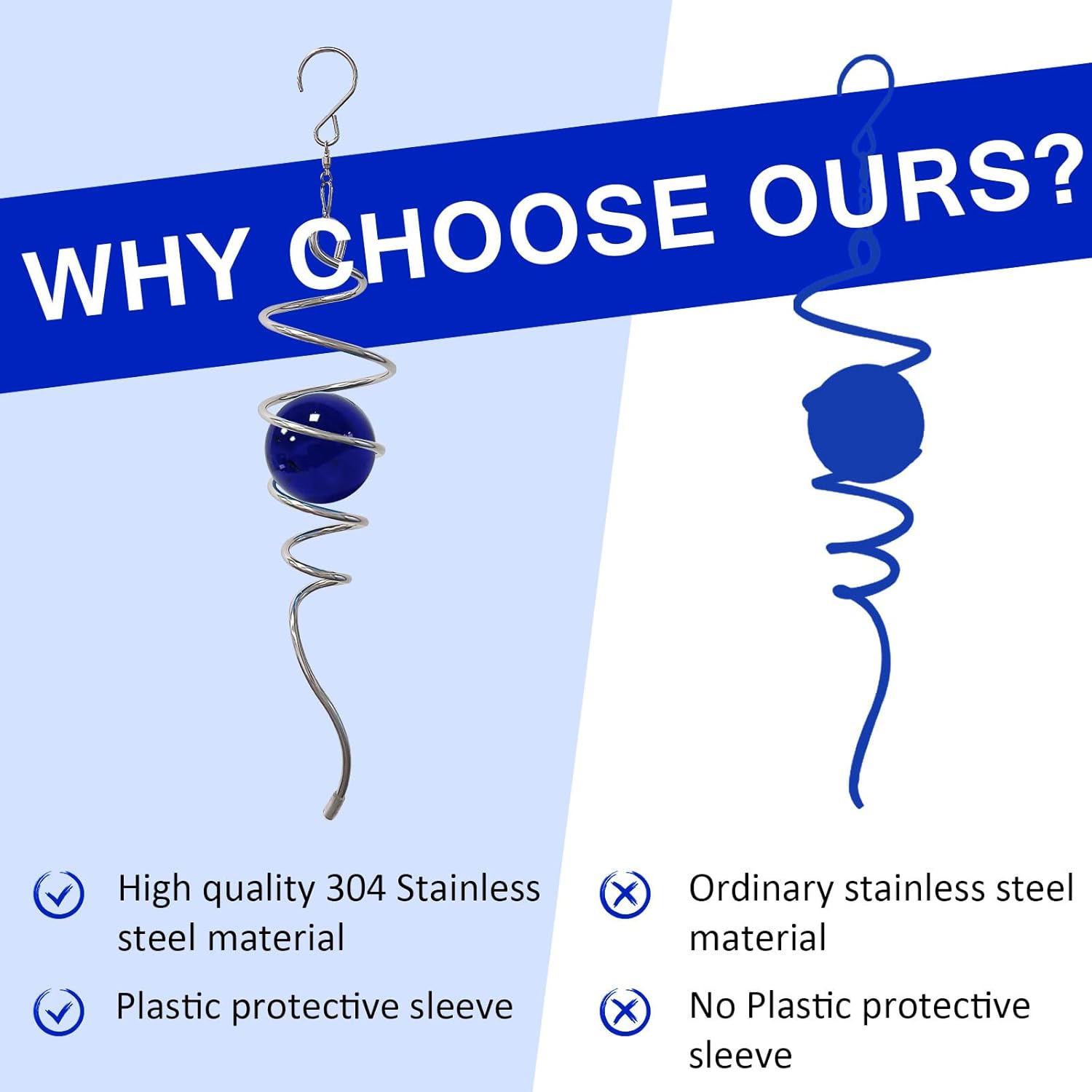 - ✔【High Quality】11inch height spiral tail made of 304 stainless steel wire,the 2inch colored ball made of pure solid color glass material,have good weather resistant,no fading under sunshine.Better quality than iron material with nickle plating and painting color glass ball in the market.Not easy to rust.