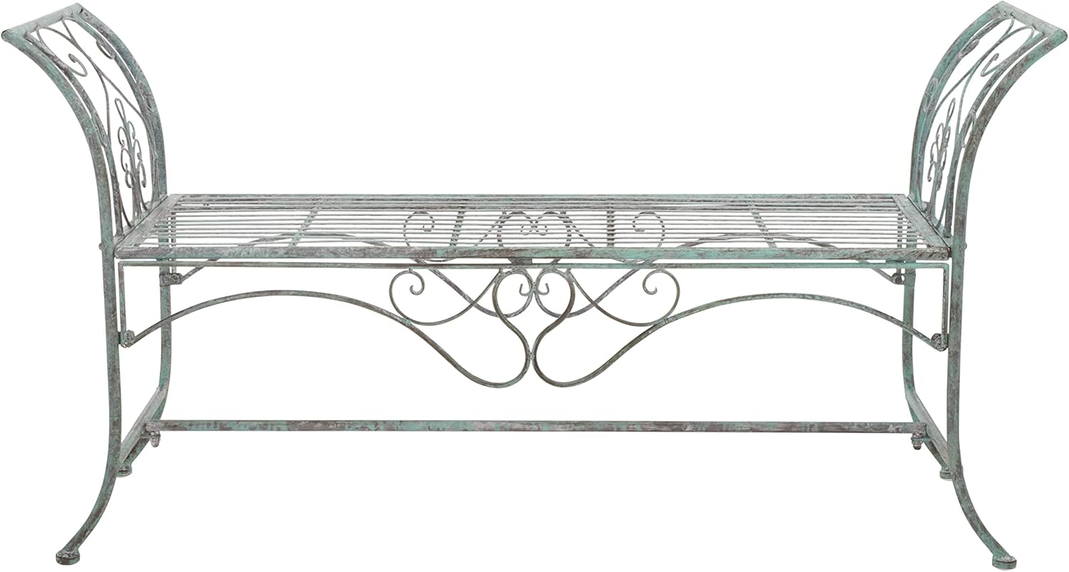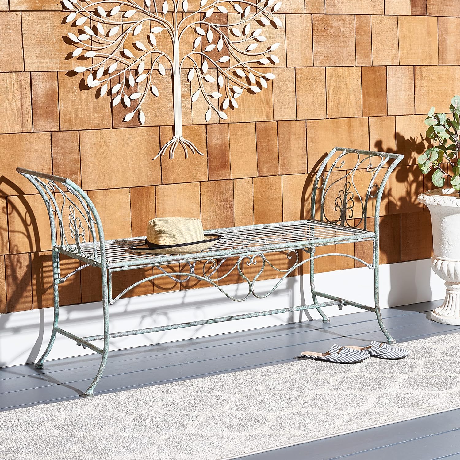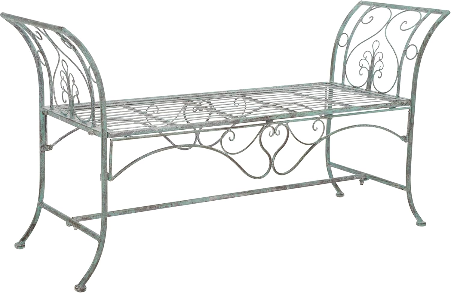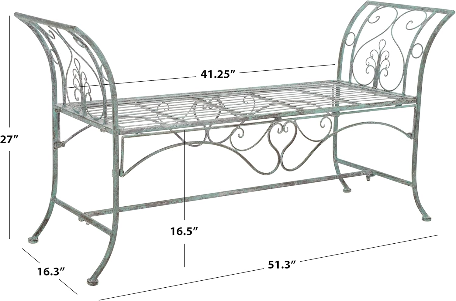 SAFAVIEH Outdoor Collection Adina Victorian Antique Dark Green Wrought Iron 51-inch Wide Garden Bench