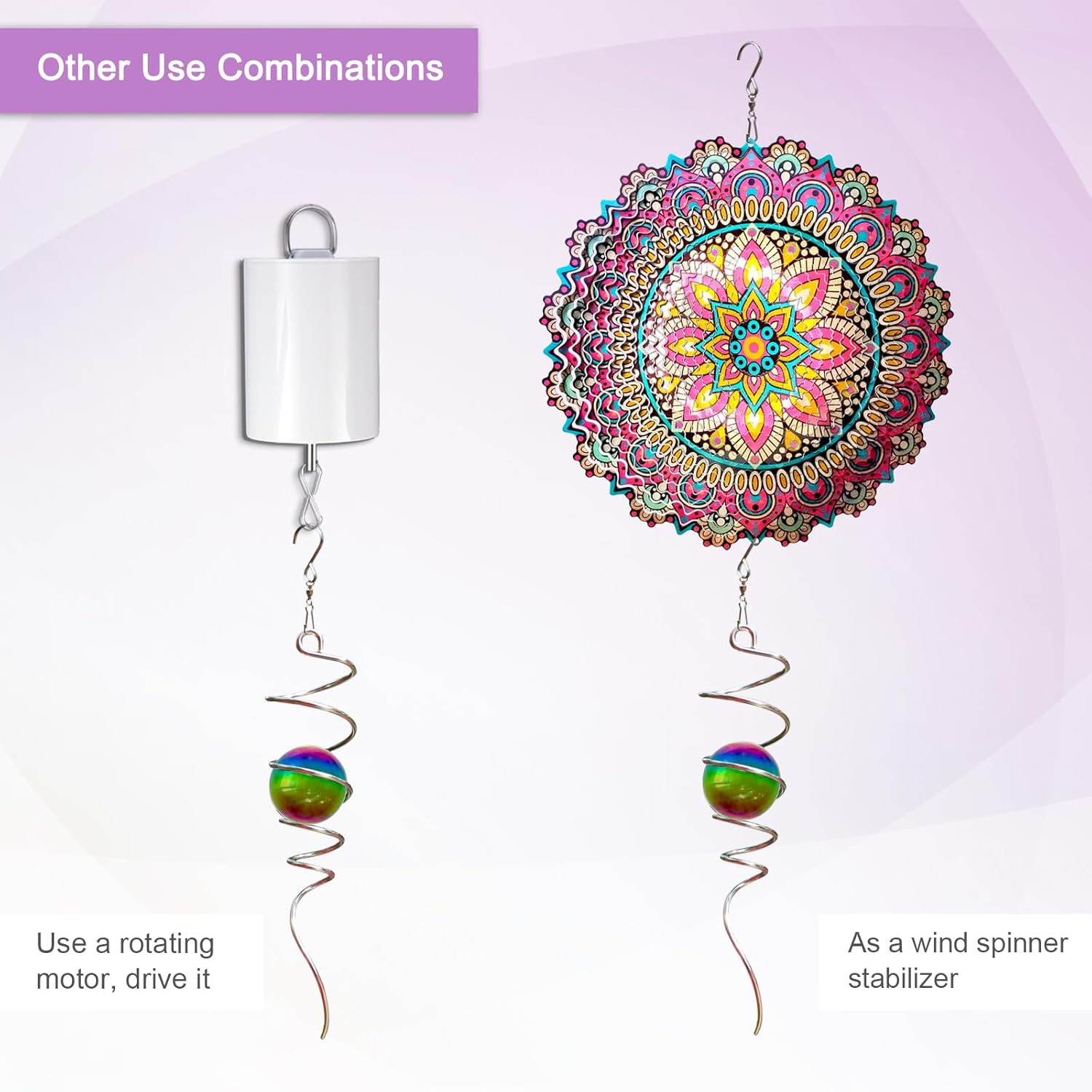 - ăVersatile Decorative Spiral TailăUnleash the charm of the glittering decorative wind Spinner tail. Whether you're sprucing up your home, garden, yard, porch, or looking for a pop of sparkle for your office, mall, or yoga studio, this wind-spinner spiral fits the bill.