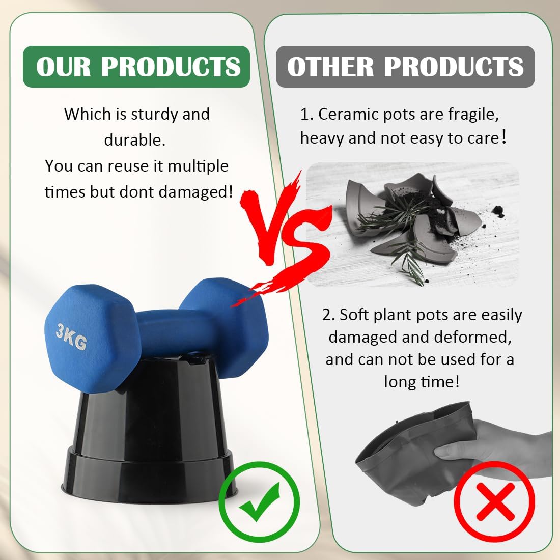 - 【Set of 20 Pack】20 pieces pots, 20 pieces saucers, 20 pieces mesh. Nice and strong plastic pots, green color. Quality is much better than light weight disposable nursery pots.