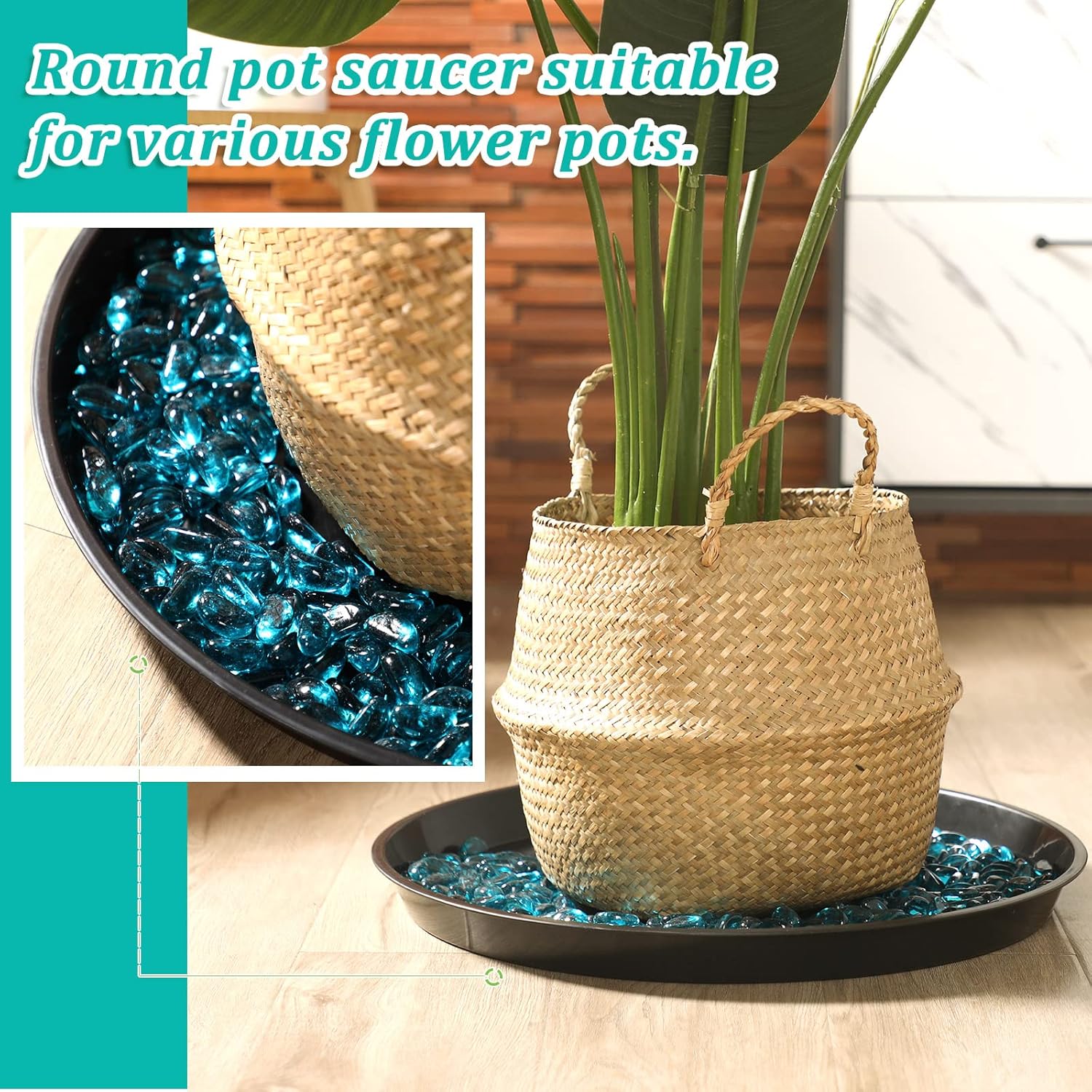- For Home Decorations: large planter saucers are designed with matte finishing exterior in soft; The smooth surface is easy to clean and wash; Dark appearance will not affect any color matching with planters; You can add some colorful pebbles or small figurines there, use the tray as a display tray for your exquisite jewelry, or take it as a serving tray to hold fruits and more