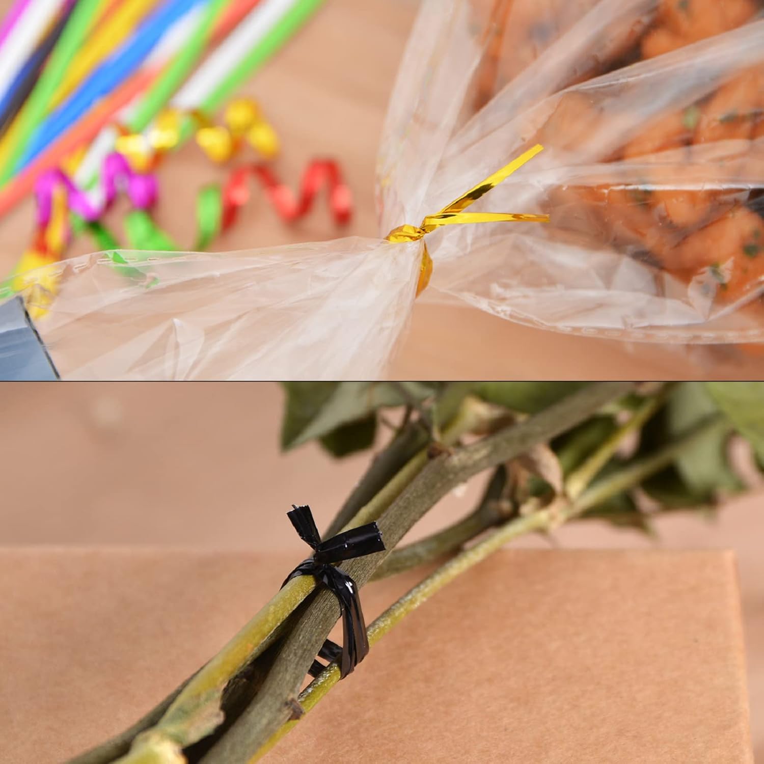 - Colored Metallic Twist Ties Wide Application: These bag ties can Using at home, office, travel, gardening and flower decoration, party. making crafts, tying bread bags, tying candy bags, fixing candles, tying coffee bag or some baked goods' bags.
