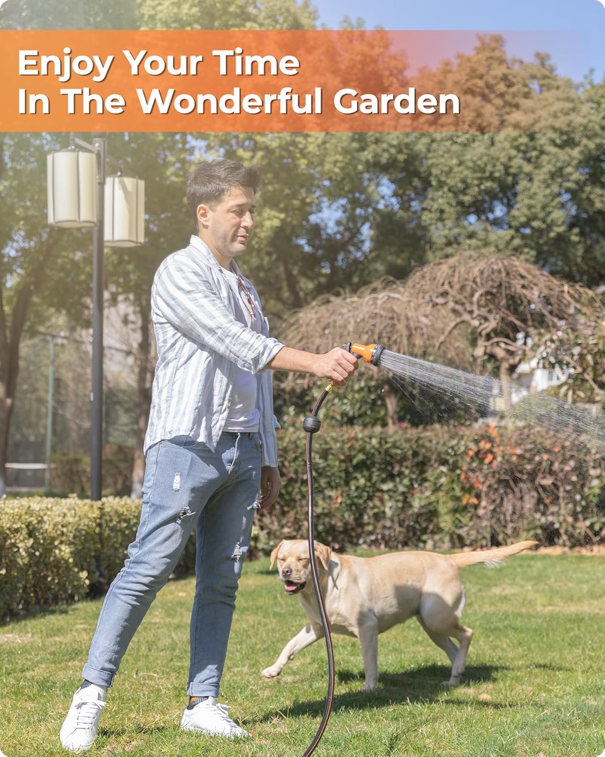 - 【9-pattern Nozzle】9 patterns nozzle available to have different spray ways which includes shower, center, flat, soaker, mist, jet, triangle, rinse and cone, meet various watering needs of customers.