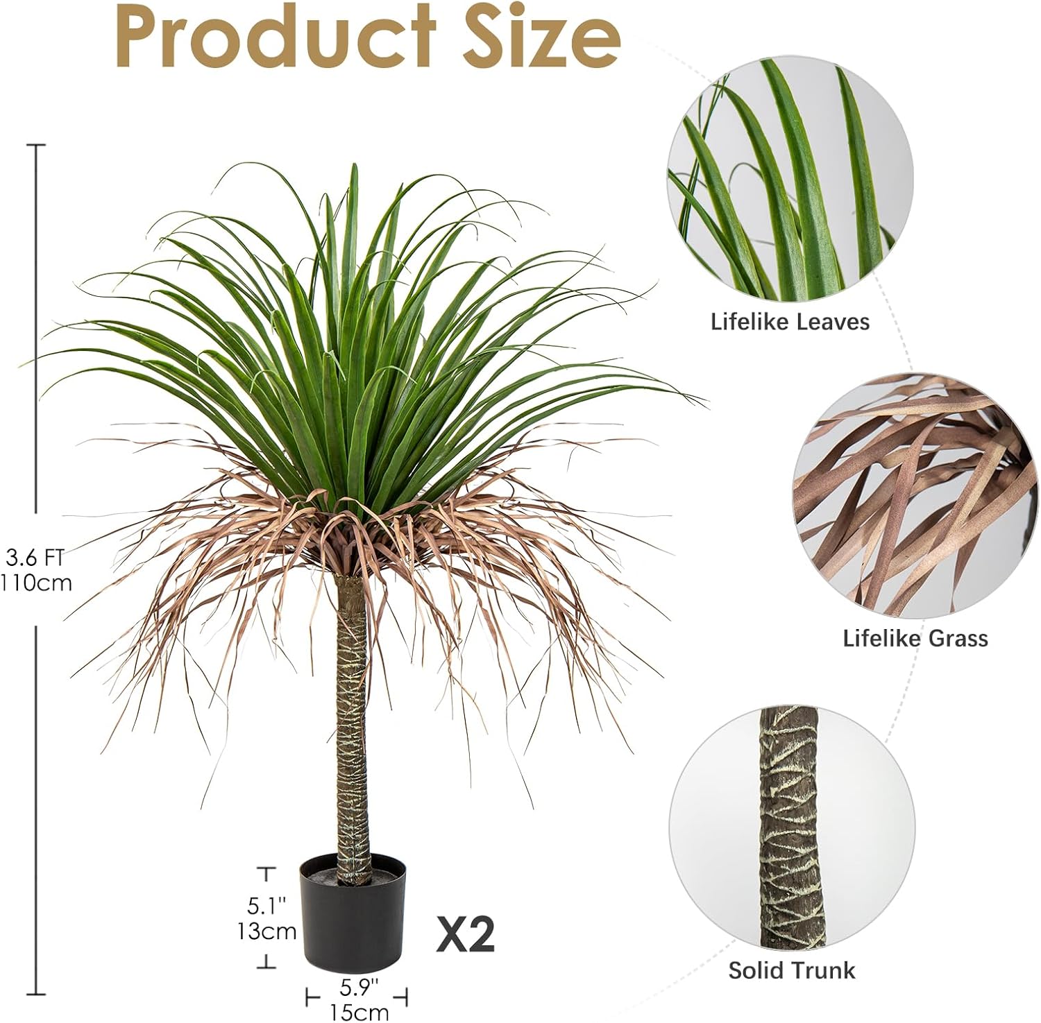 Hollyone 2 Pack Artificial Agave Tree, 3.6Ft Faux Yucca Plant in Pot, Green, Polyester, Indoor/Outdoor Decor, Housewarming Gift