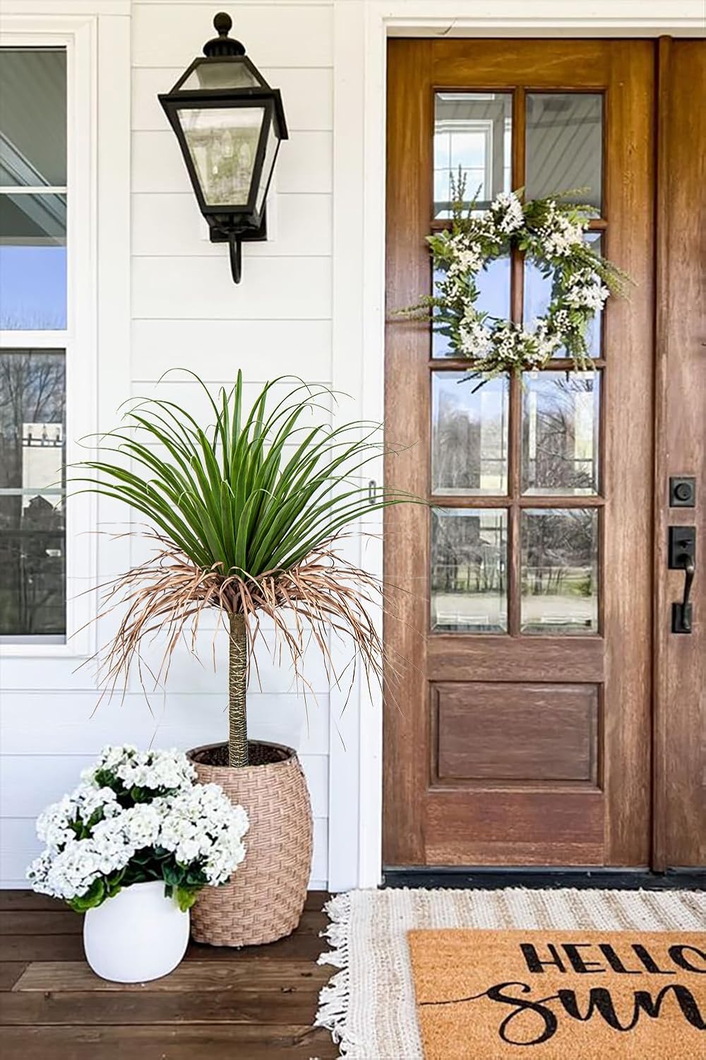 - ăPremiun Quality MaterialsăThe package comes in 2pcs artificial fake agave plant potted. The indoor outdoor agave tree trunks and leaves are made out of premium quality polyester materialâwhich makes it so easy to wipe clean. Leaves and grassmay flatten and deform during transportation, You can use a hair dryer to blow shape it when you receive the tree.