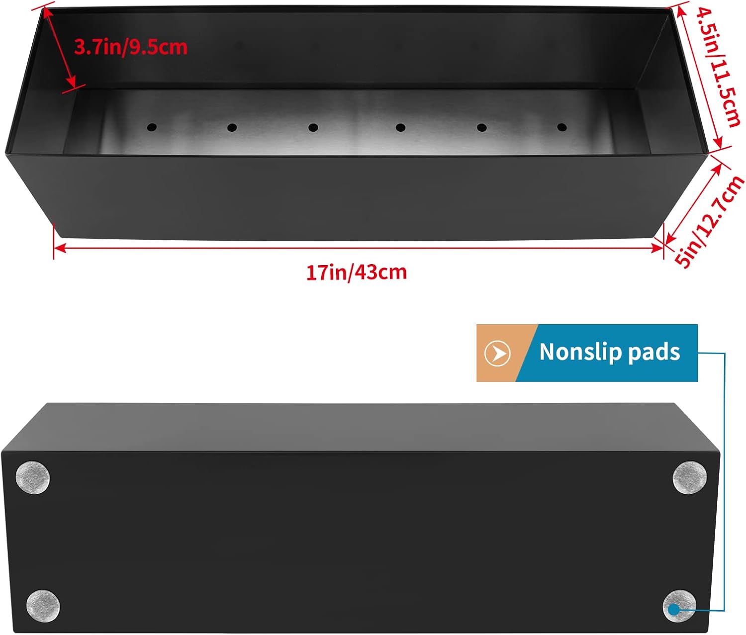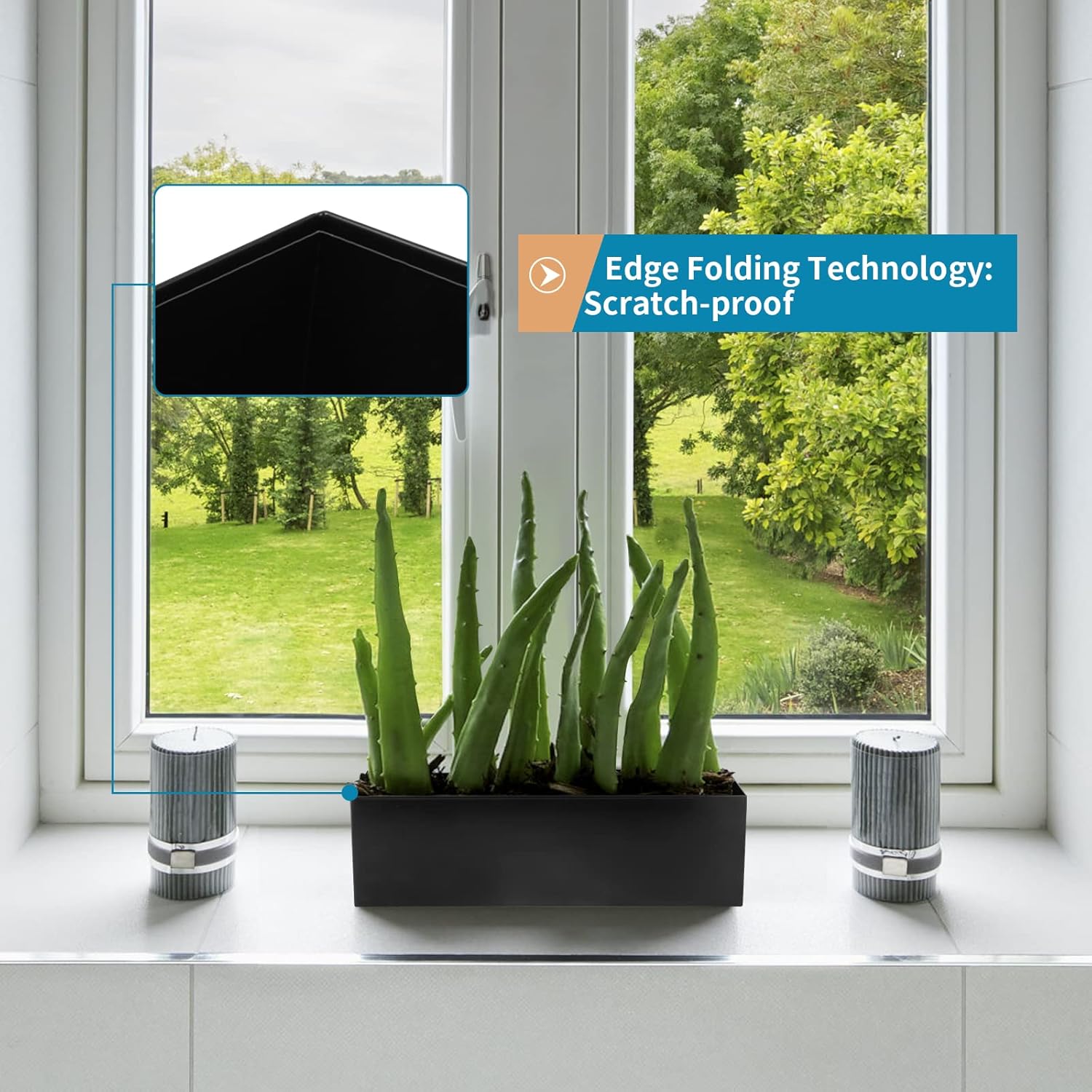 - DIMENSION: Outer size: 17" x 4.5" x 5"(L×W×H), perfect for narrow space like windowsill, mantel, floating shelf, top of partition wall, or use as long centerpiece on tabletop (Comes with nonslip pads to increase stability and prevent scratching countertop)