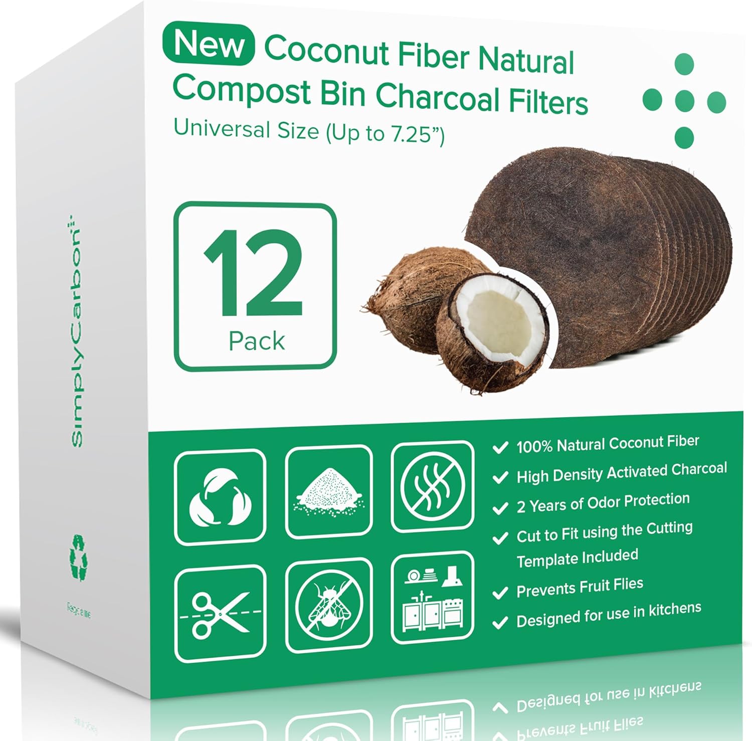 - ✅ WORLD FIRST BIODEGRADABLE FILTER: Simply Carbon have developed the world’s first activated charcoal compost bin filter made using coconut fibers. The filter is 100% natural and biodegradable. Avoid traditional filters which are made with Terylene polyester, a thermoplastic which cannot be recycled and will not decompose in landfill.