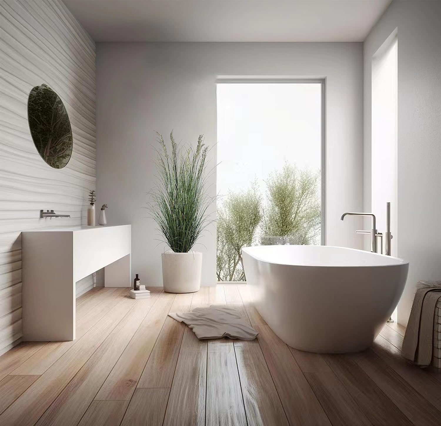 - 2.Made of PVC material, our artificial grass plants will neither wither nor fade and no odor, lifelike as the real plant. The flower and grass pots are strong and durable.