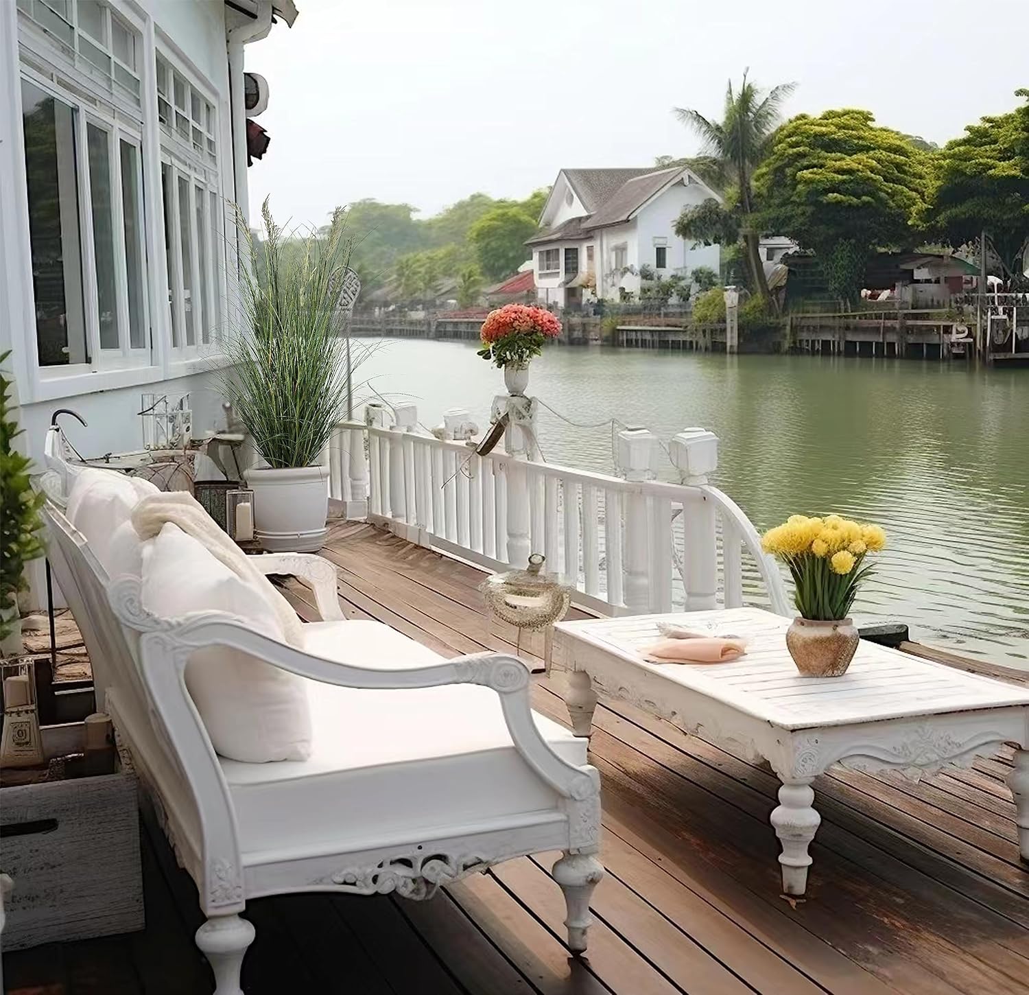 - 1.This faux plant features close to natural green grass with 9 white silk reed flowers, all inside a durable and solid flowerpot. Artificial pampas grass is 71 inches high.base with a black plastic pot in 7'' dia ,5.9''high.it’s easy to put it in a nice bigger planter as desired.