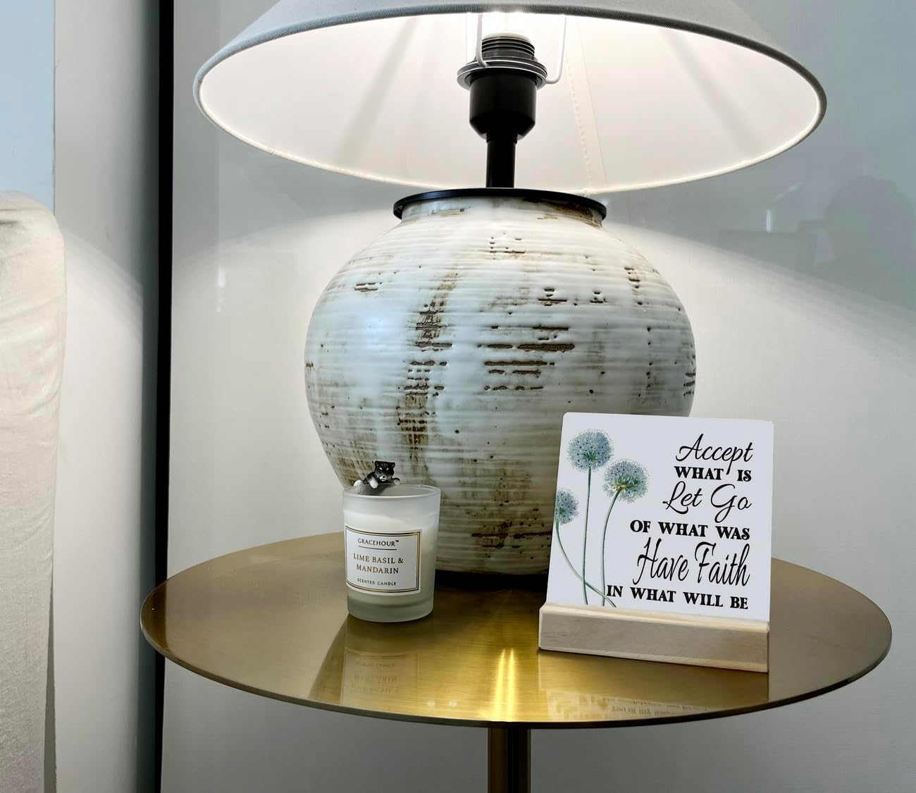 - Well-Made - Ready to use right out of the box, our plaque decorative signs are well-made, durable, safe to use, perfect for gifting and indoor use. elegant desk decorations for bedside tables, living room, bedroom, etc.
