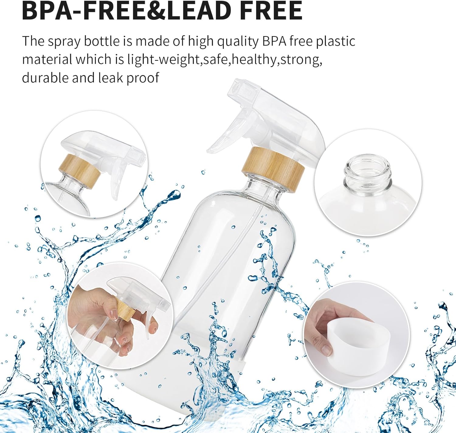 - 【Environmental protection and durability】 The spray nozzle is made of environmentally friendly PP new material, without impurities. The silicone protective cover is added to the bottom of the bottle to offer it an extra layer of protection and make it more durable.