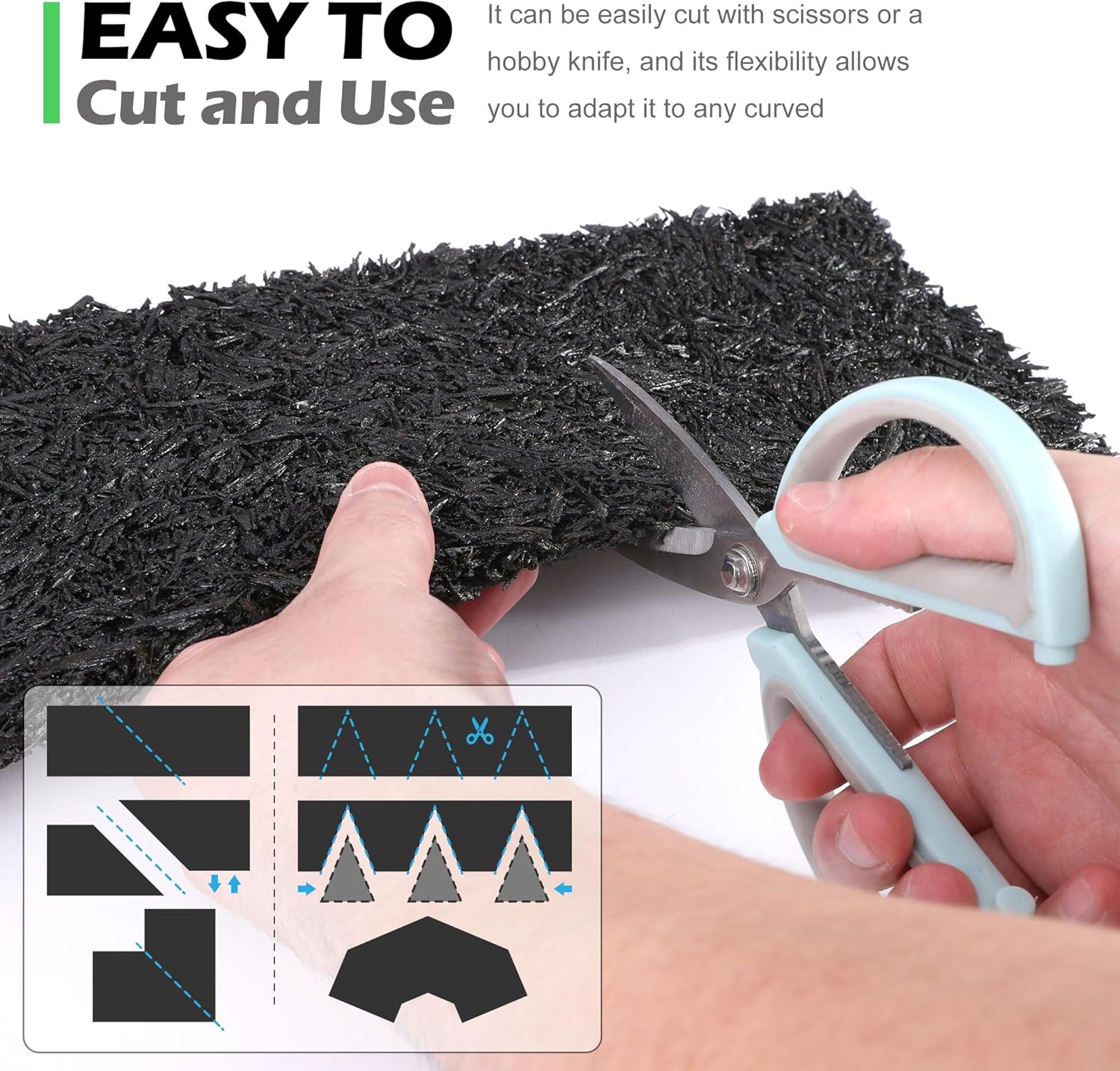 - [Easy to Use]: This rubber mulch roll is easily cut with scissors or a utility knife to fit around your planting beds, under fences, etc.Just roll out where desired and save money instead of buying bark mulch each year.