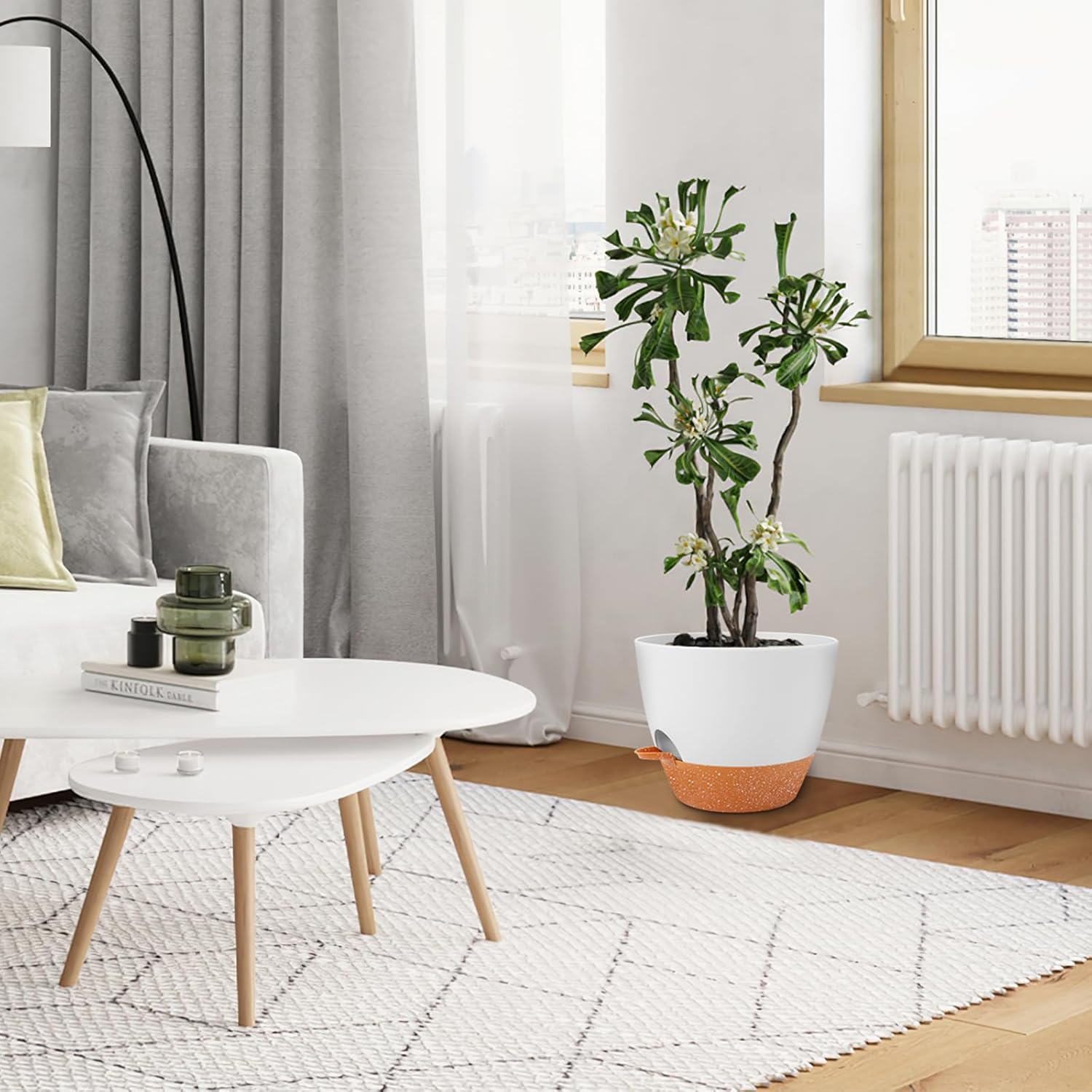 - 【Modern Simple Design】Pure white plant pot with brown bottom and matte finishing exterior, bringing out a modern minimalistic styled. the round planter pots are perfect for all small to medium-sized indoor house plants and herb spice gardens. Works well with orchid, cactus, succulents, aloe vera, basil, flowers, Peace Lily,air plants, snake plant.