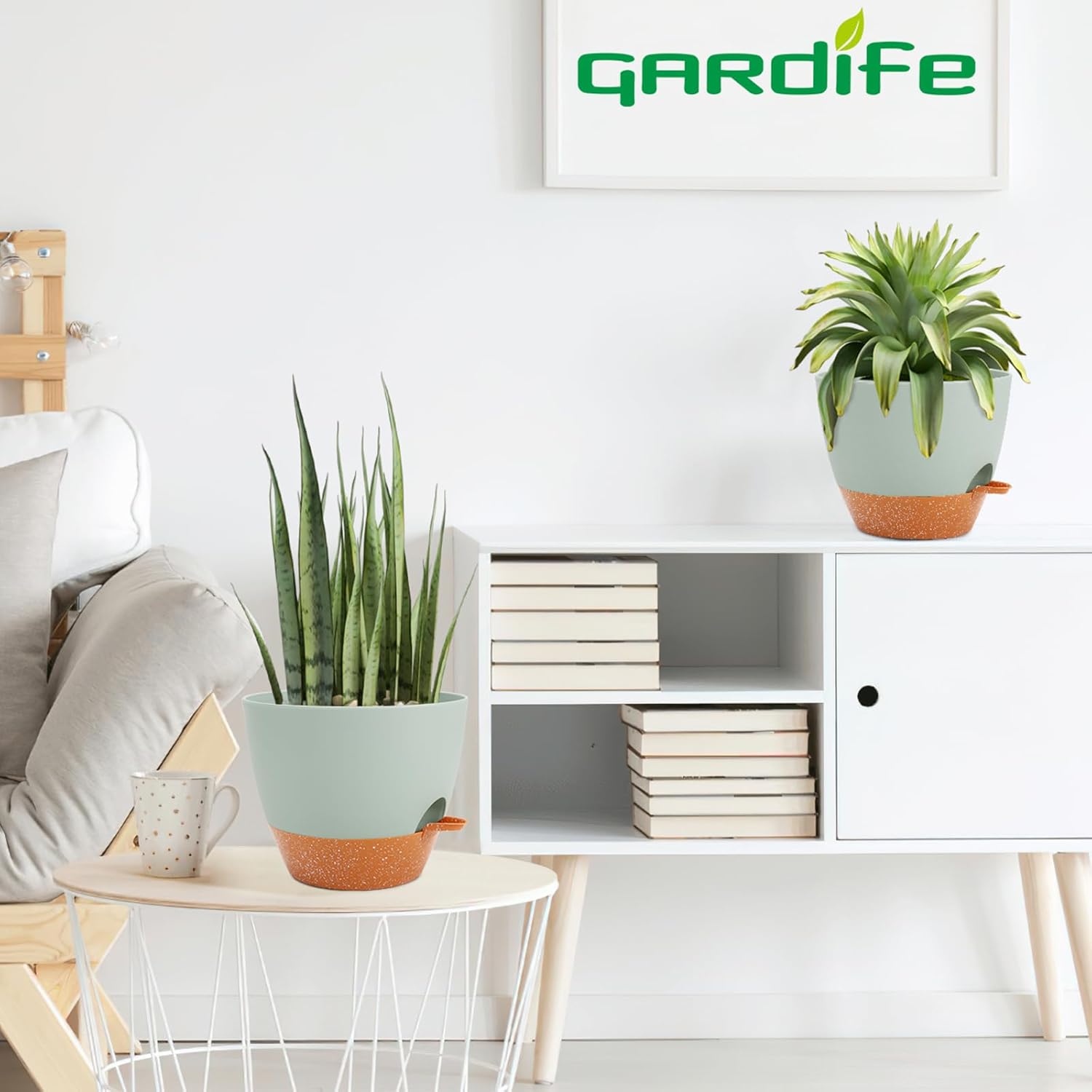 GARDIFE 10 inch Plant Pots,Self Watering Pots, 2 Pack Flower pots, Large Plastic Planters with Deep Reservior and High Drainage Holes for Indoor Outdoor Plants and Flowers, Green
