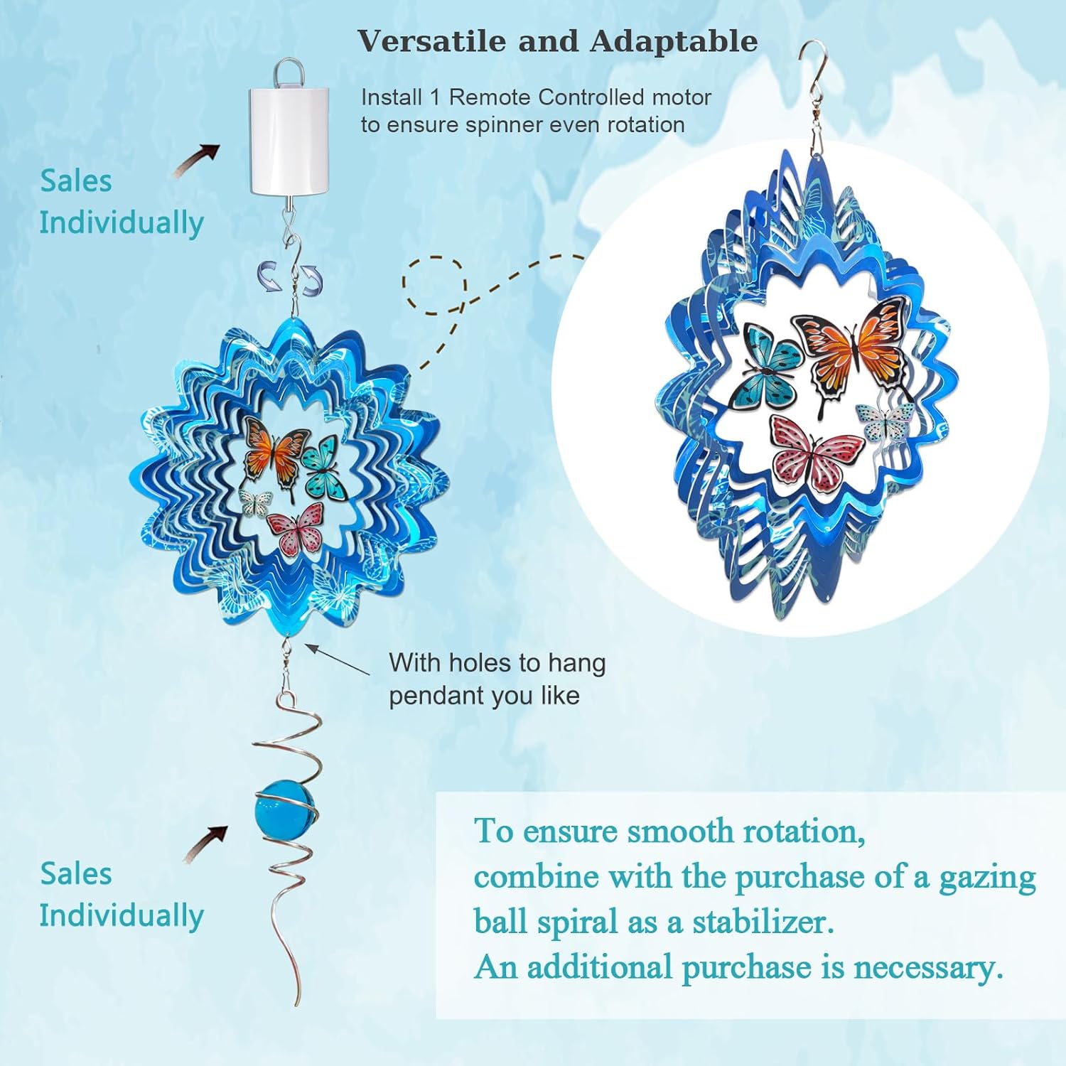 - ăVersatile Wind Spinner OutdoorăThe Butterfly Outdoor Wind Spinner, a symbol of hope, change and rebirth. The Butterfly Spinner is not just a garden decor - it is a tool to invigorate your spirit to feel peace and restoration in its movement.