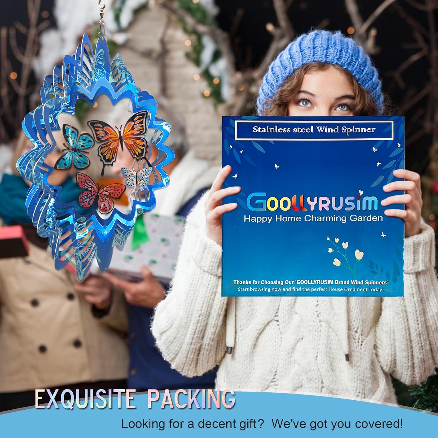 - ăImpressive Butterfly GiftăThe Butterfly Wind Spinner is a unique gift for that special someone. Pack in an elegant gift box and prepare to impress. This butterfly present is great for Mother's Day, Father's Day, housewarming, Thanksgiving, Christmas.
