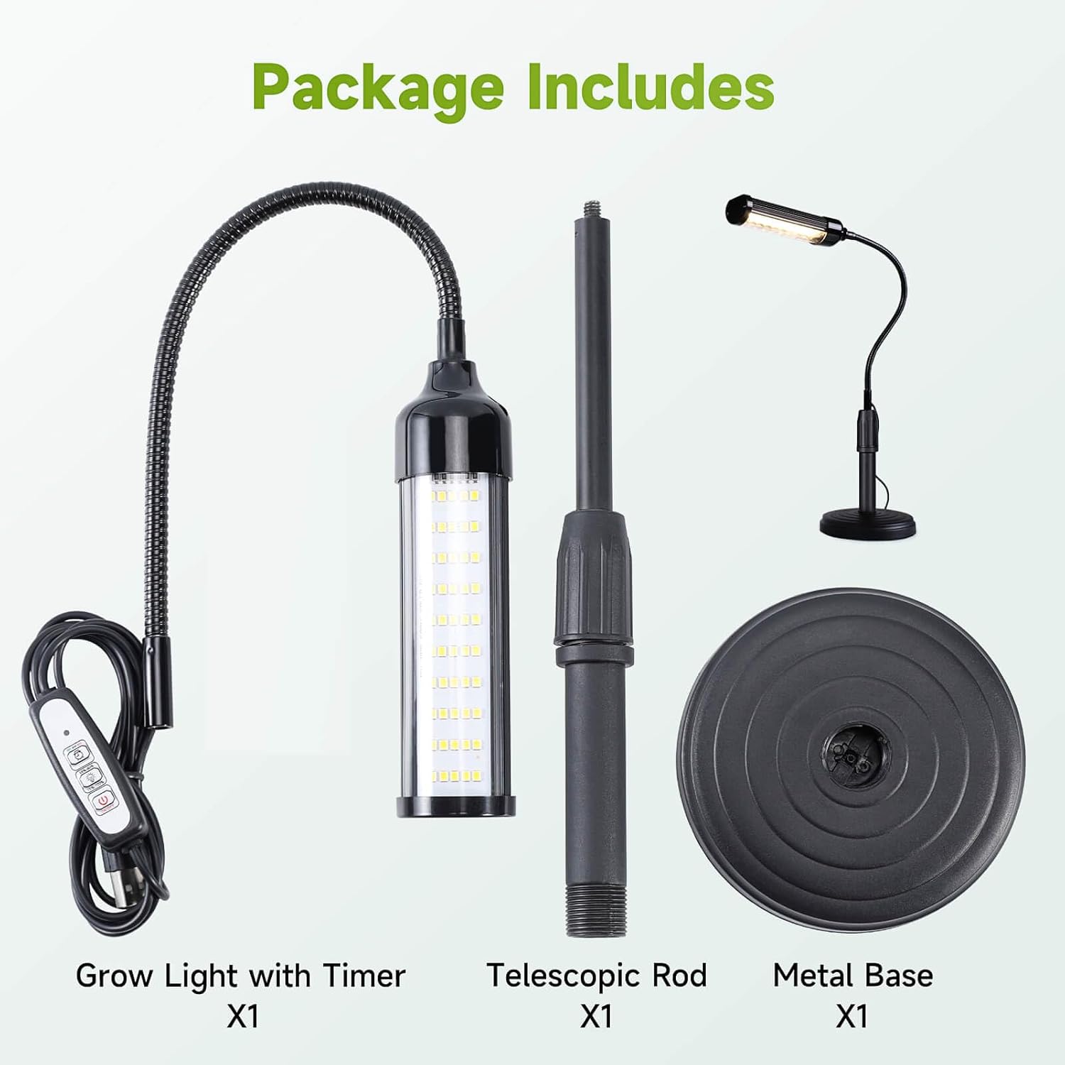 - Easy to Install - With flexible Gooseneck & Solid Base ,Height Adjustable Min 13-Max 18 Inch ,the plant light allows you to place the growth light in any desktop or countertop without fall to provide the best lighting angle for your plants,meet the cover around the plant.Powered by USB or AC Power Plug,