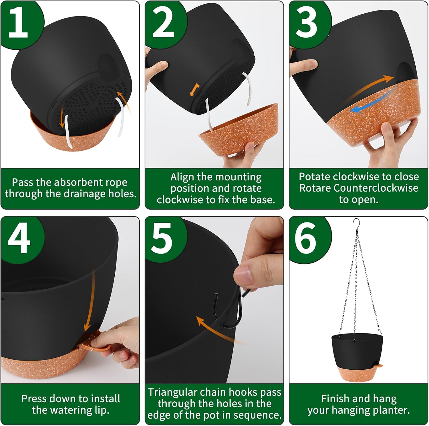 GARDIFE Hanging Planter, 10 inch Hanging planters for Indoor. Outdoor Plants, Self Watering Plant Pot, 2 Pack Large self Watering Hanging Planter, Black