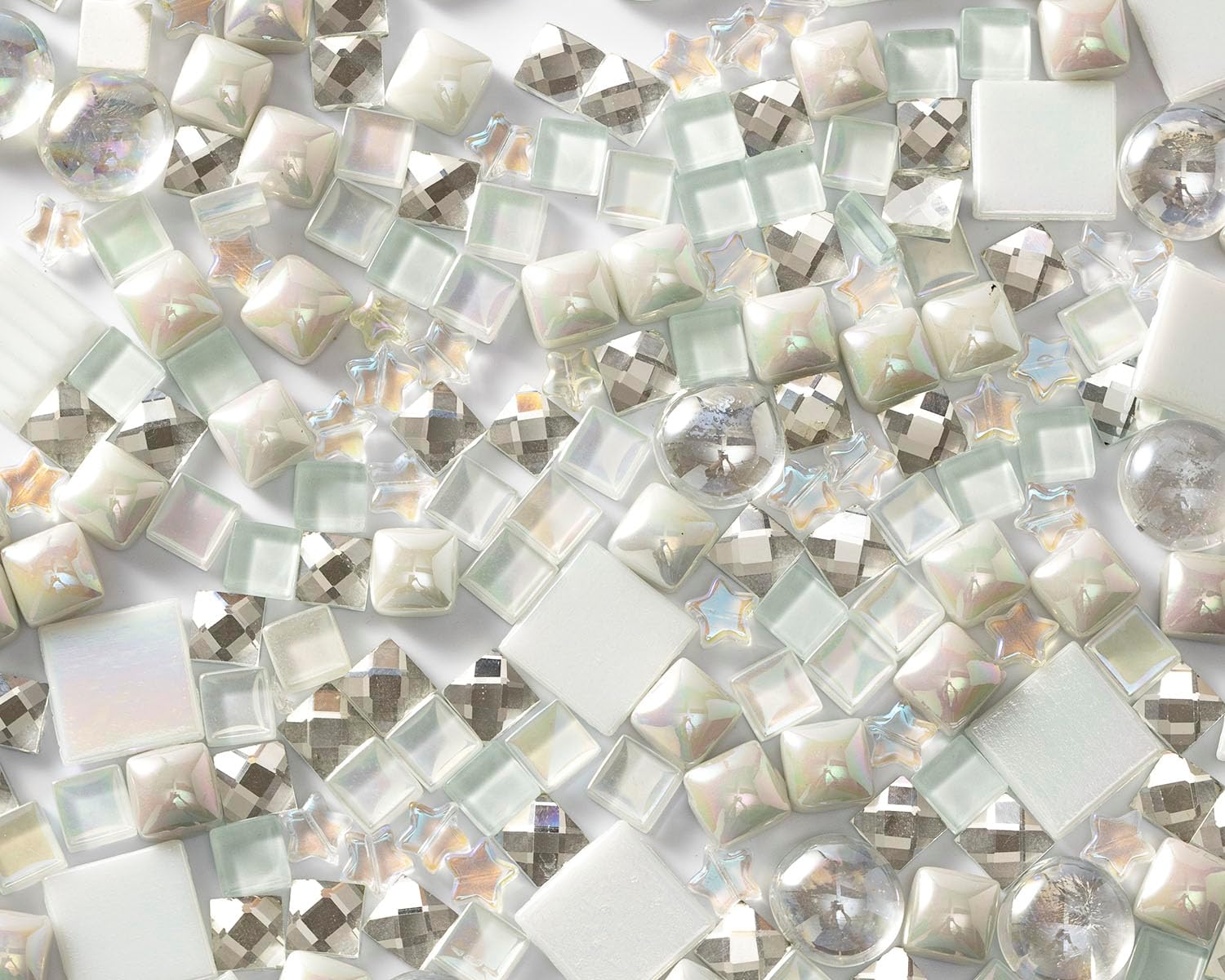 - Exquisite Assortment of White Glass Mosaic Tiles: Discover the ultimate collection of white-colored glass mosaic tiles for crafts, including mirror mosaic, crystal mosaic, and clear glass gems. This unique assortment ensures endless creative possibilities for your mosaic projects