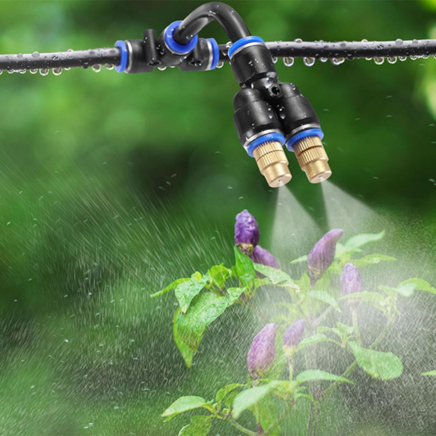 - 【Brass Misting Nozzles Tee with 5inch Built in Hose】: Made of premium brass, Mornajina Brass Misting Nozzles Tee with 5inch built in hose can be bent and fixed at 360 degrees, very convenient to adjust the place to be sprayed and specify the direction. And these misting nozzle tee thread sprayer with replacement heads equipped with leak proof self sealing o ring, no tape or sealant is required.