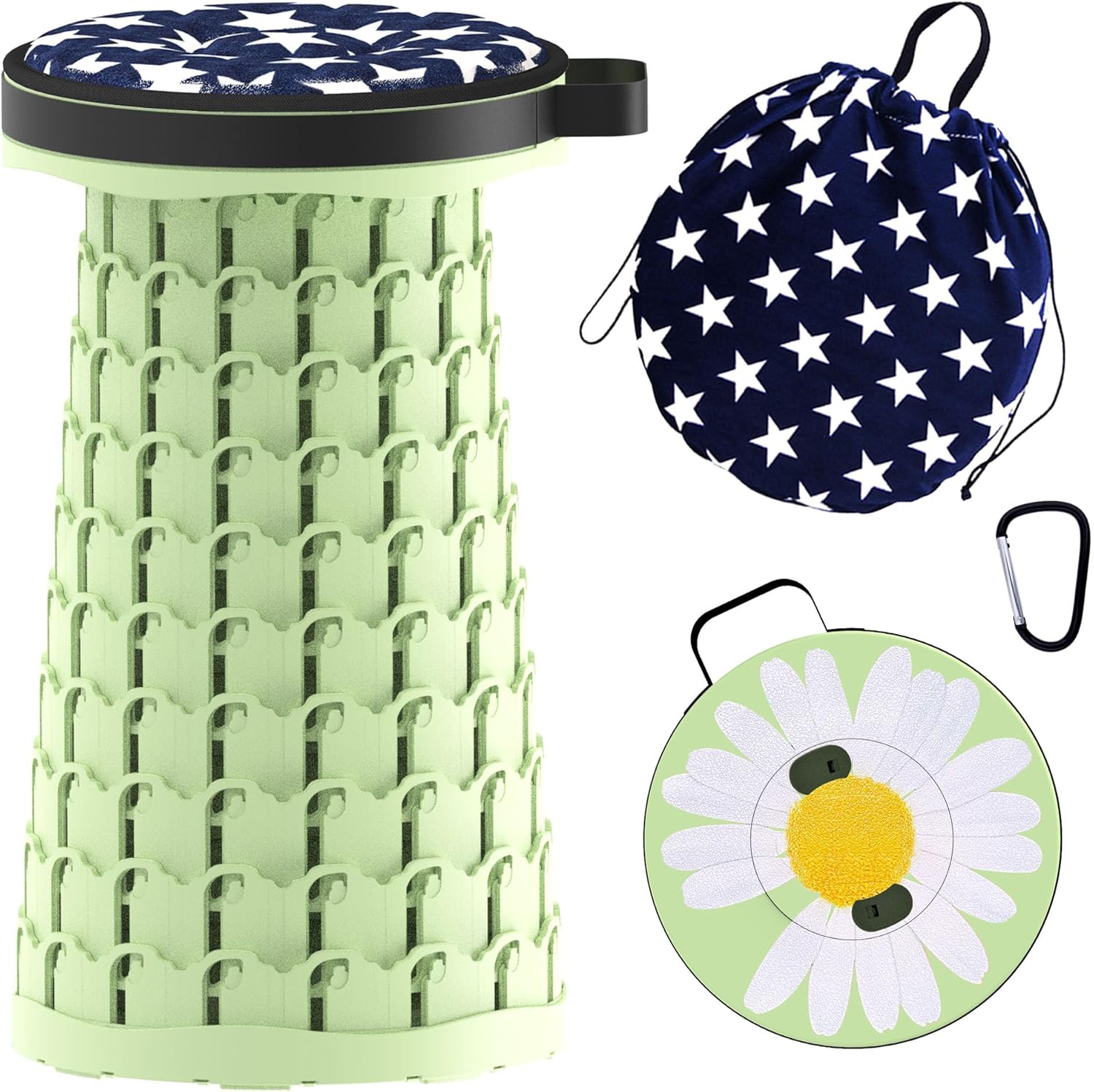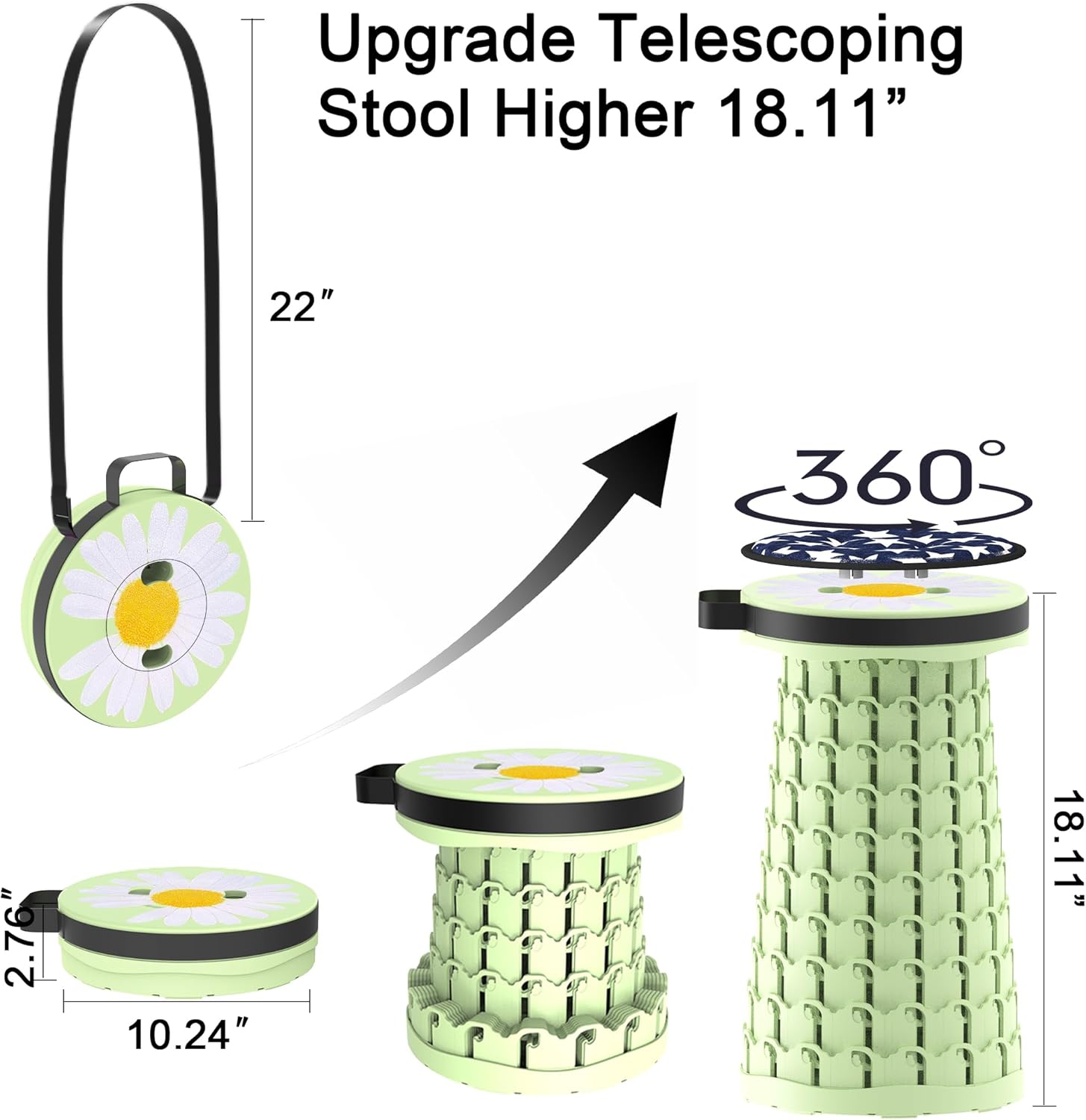 ALEVMOOM Upgraded Telescoping Collapsible Stool with Cushion, Folding Stool with Printing Portable Retractable Foldable Seat Max Load 600lbs for Adults Camping Fishing Outdoor