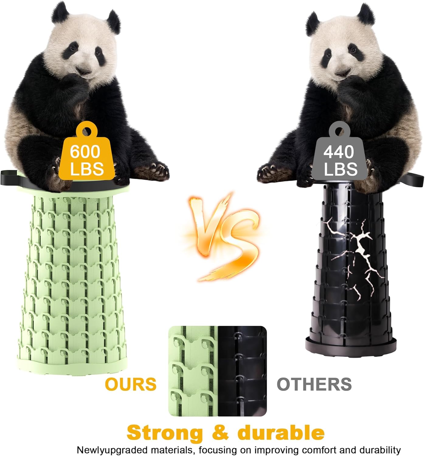 - 【ULTRA STABLE PERFORMANCE】 Upgraded telescoping structure and reinforced clasps give the foldable stool extraordinary stability and rigidity. Our Portable Travel Seat can support up to 600 lbs, far stronger than other similar products. Side support and the capacity of resistance to tilt are also reinforced, which makes the stool more sturdy and durable, ensure safety.