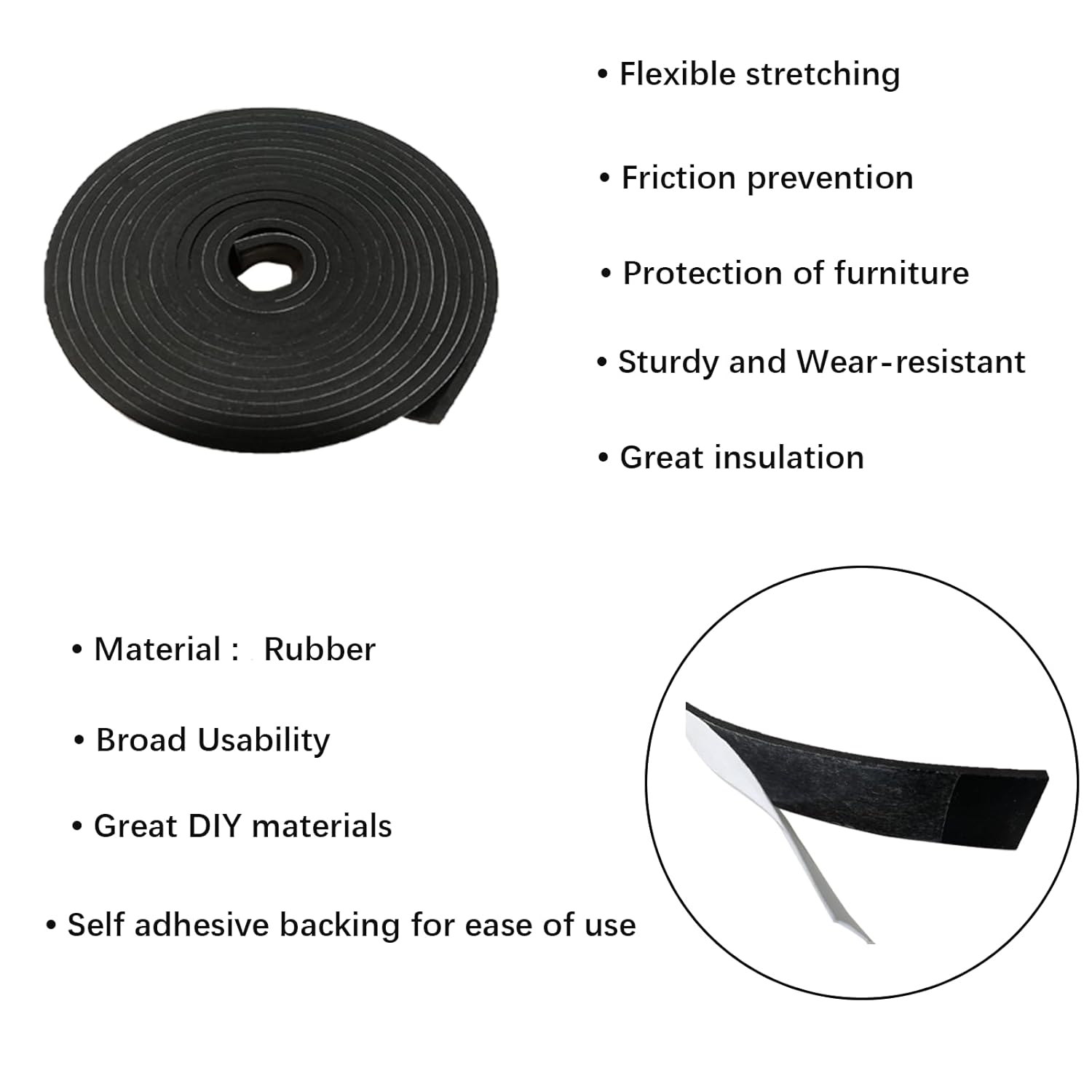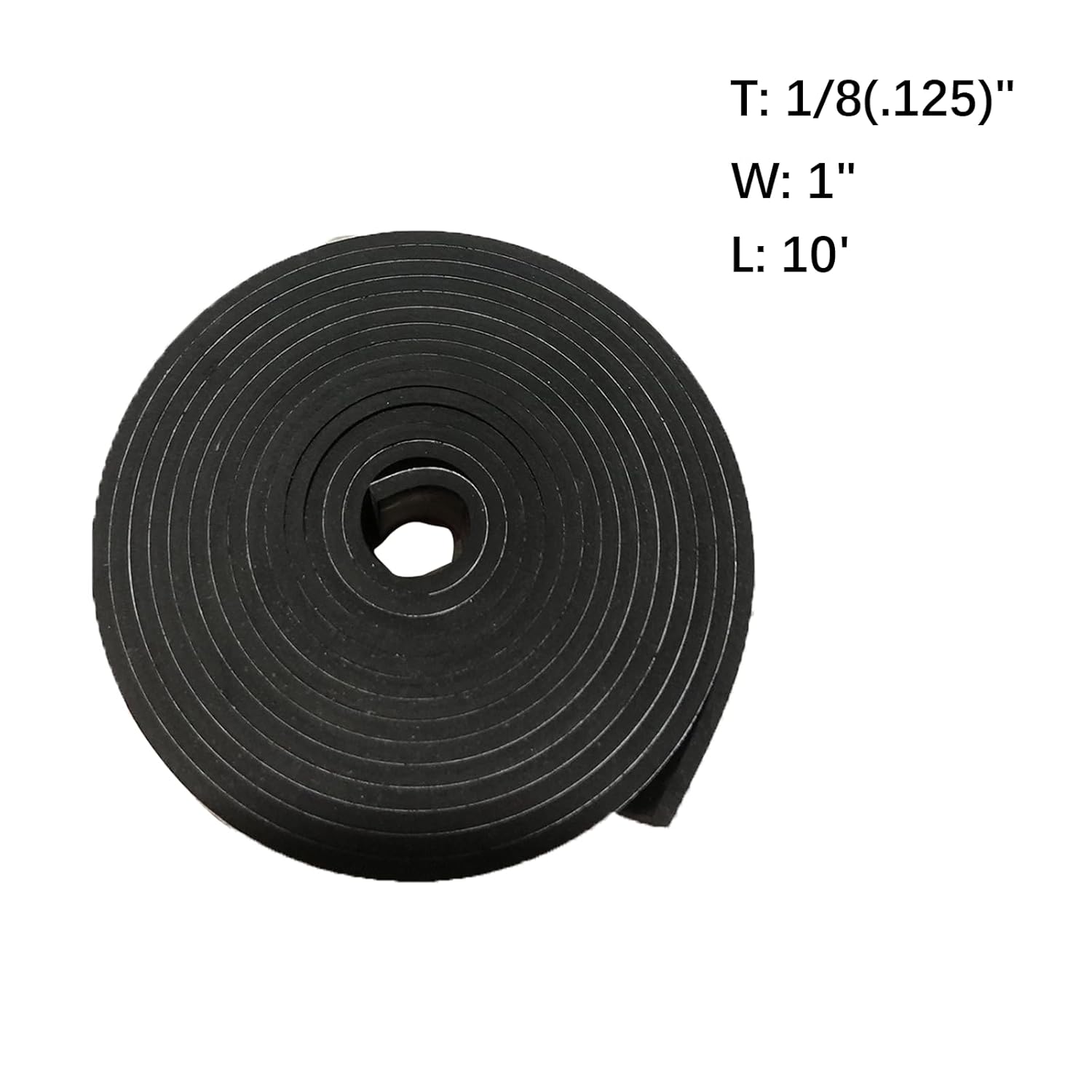 Solid Rubber Strips with Adhesive 1/8 (.125)" Thick X 1" Wide X 10'Long, Solid Rubber Sheet Rolls Self Adhesive for Anti-Slip, Anti-Vibration (1" X10'X1/8")