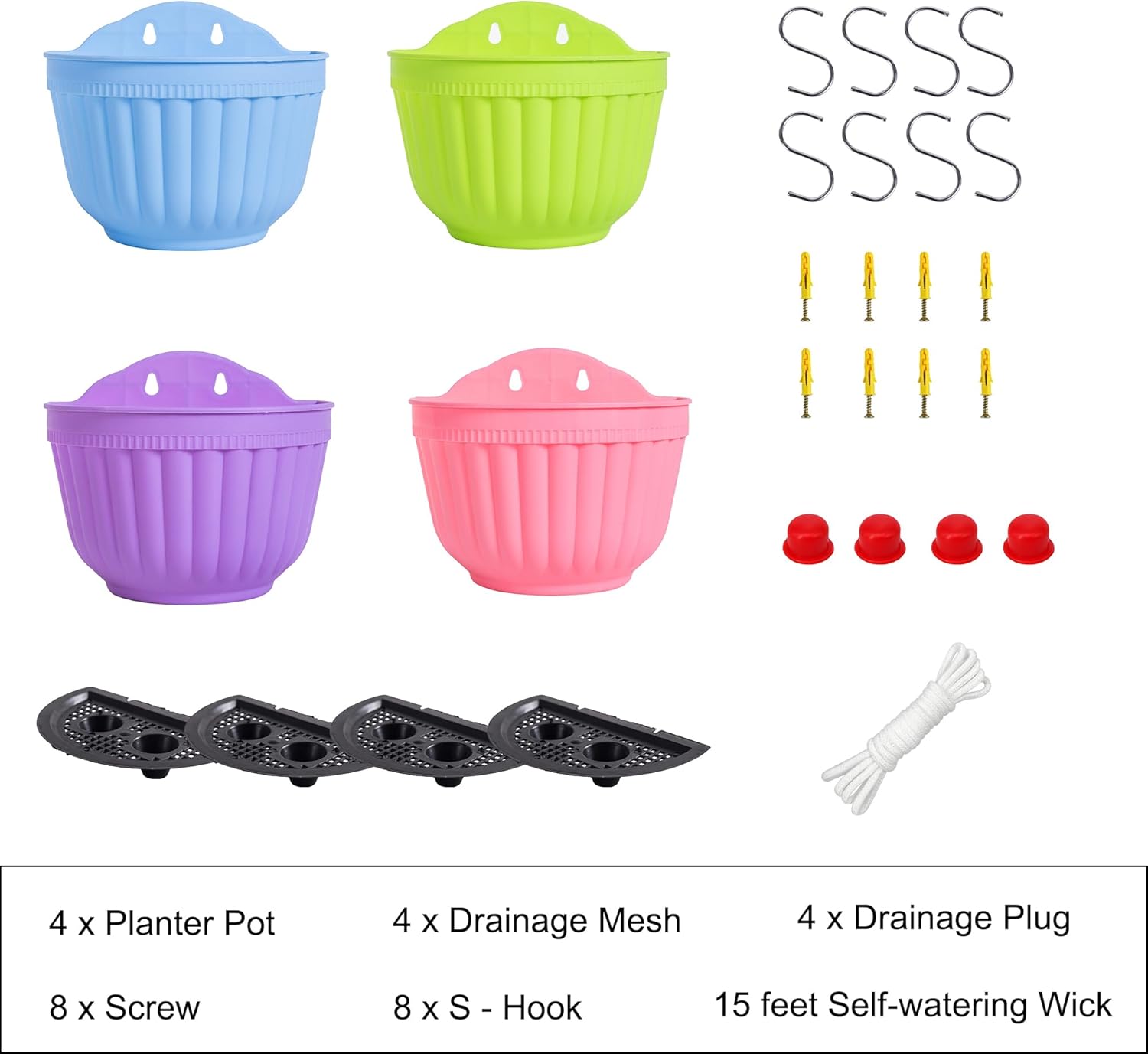 - Lightweight for Indoor & Outdoor Use: There is a Drainage Plug / Water Stopper to keep in for indoor use and it's removeable for outdoor use. Vertical wall hanging planter made of high quality durable PP resin material, safe and non-toxic, this polypropylene resin planter is a tough, lightweight, all-weather durability with UV protection for outdoor use, an alternative to clay or ceramic planters. SIZE (L*W*H): 8.1"x4.7"x6.8"; 8 x “S” hooks + 8 x Screws included.