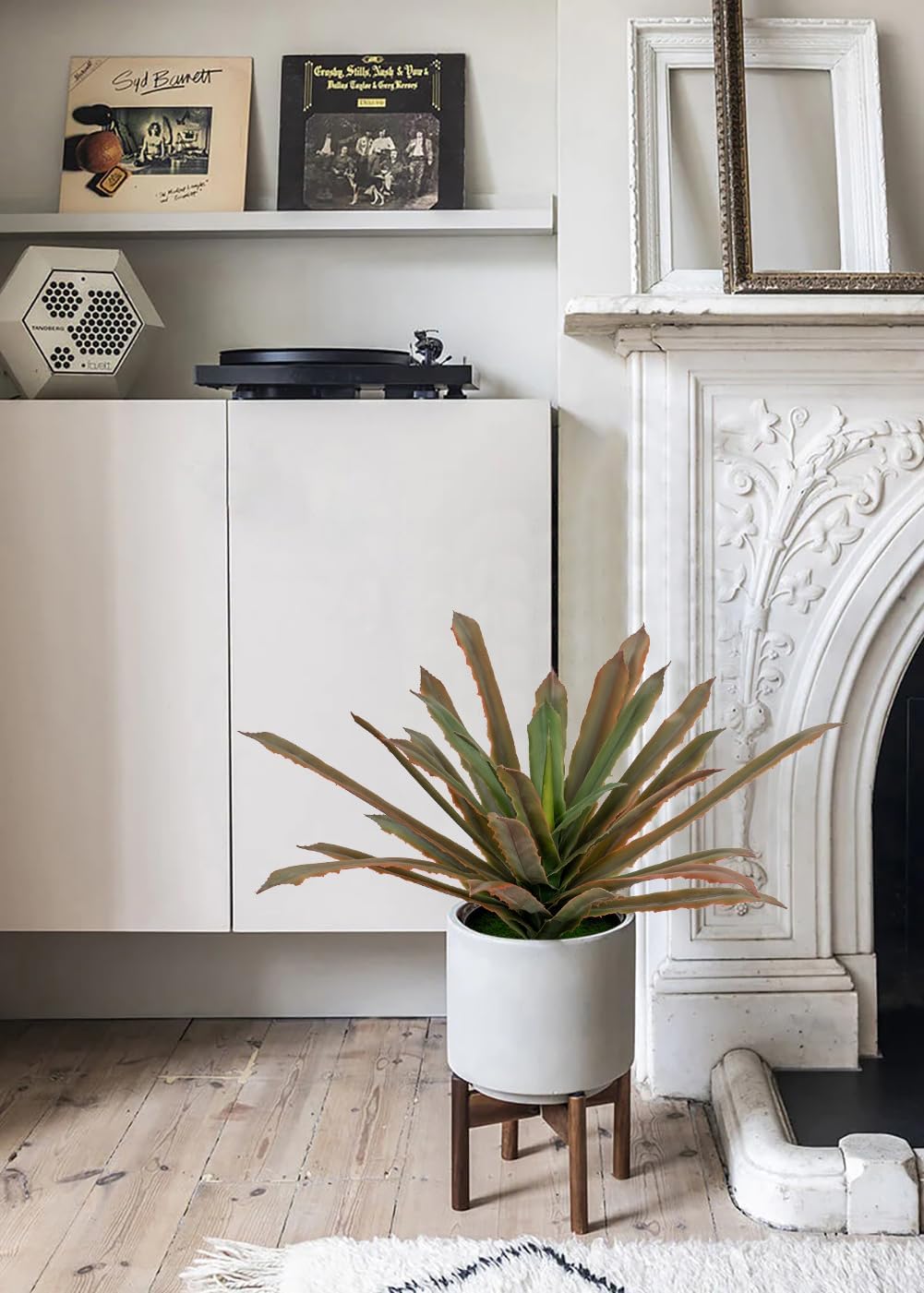 - Decorative Fake House Plant --- With realistic texture and color, the fake potted agave plant comes with dark green and red spiky flocking leaves that lay on top of one another, creating a natural and realistic look. A stunning fake plant that will elevate your room decor. Note: The white powder on the leaves is to imitate replicating the touch and feel of real plants.