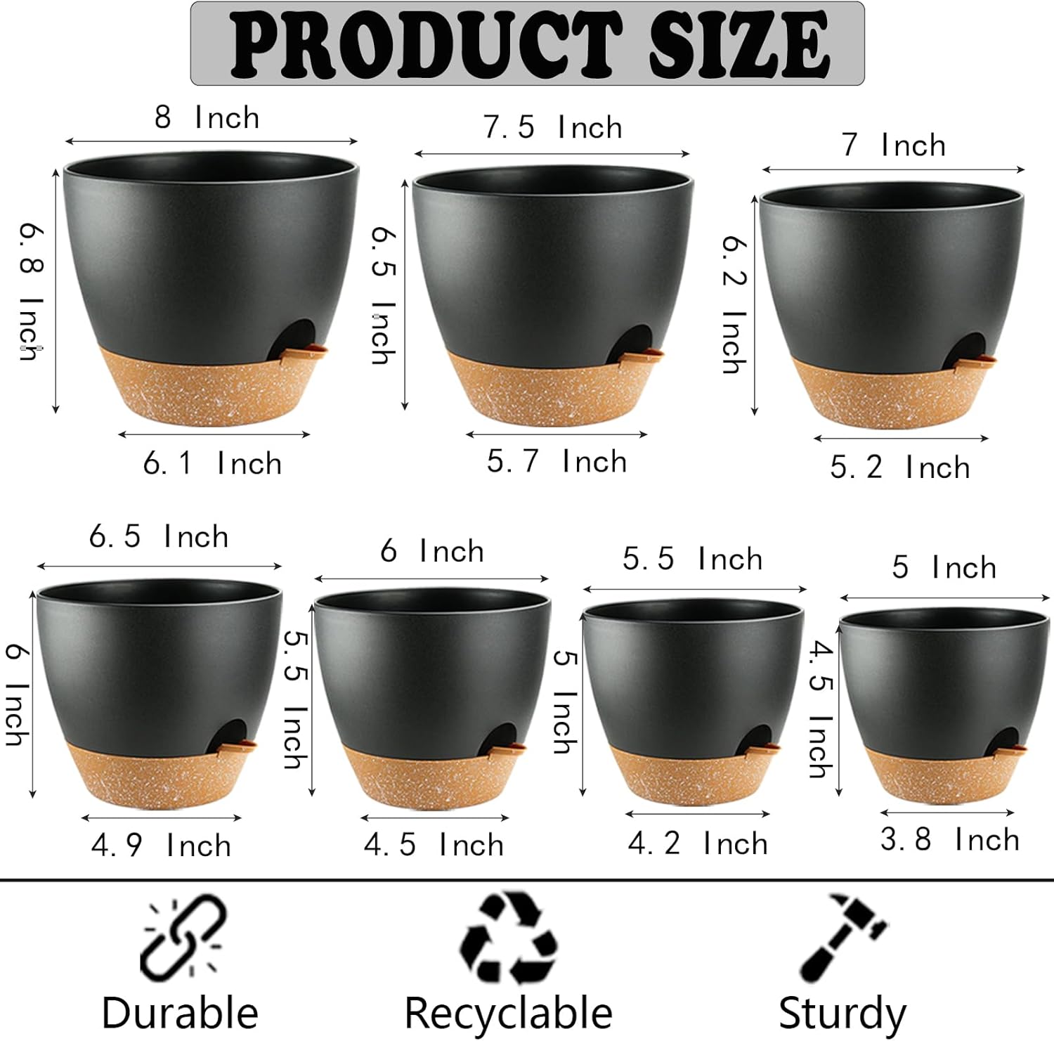 Indoor Pots For Plant Self Watering Plant Pots For Lazy People, 8/7.5/7/6.5/6/5.5/5 Inch,Black Plastic Self Watering Planter For All Houseplants,Succulent, African violets, Flowers And Cactus