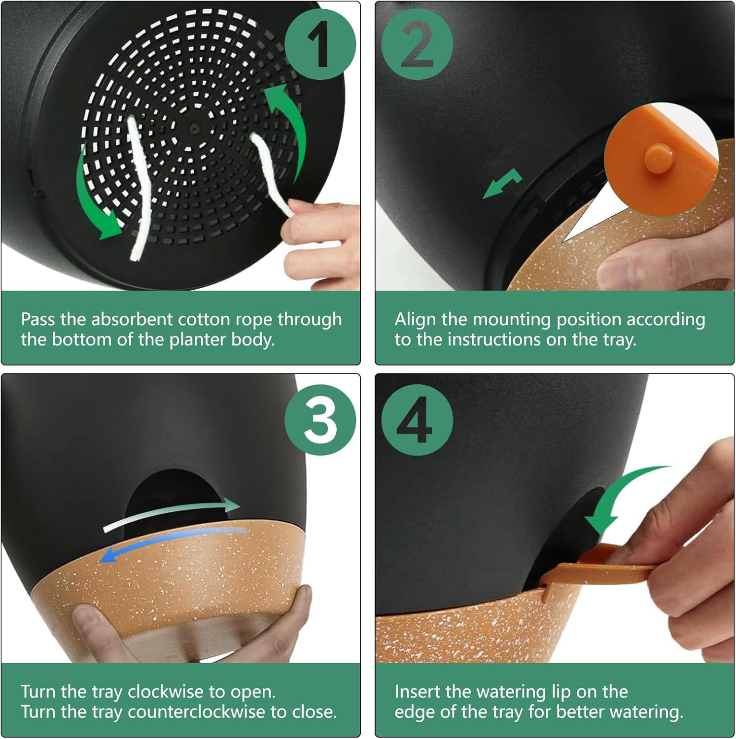 - SUN-E Self Watering Planter, precisely brings you such a tranquil oasis.Not just a tool for nurturing plants,but also a manifestation of the aesthetics of life.The planters seamlessly integrate the beauty of nature with modern design elements.The varying sizes offer flexibility in arranging plants,the contemporary finish adds a touch of sophistication to any space.With their optimal drainage and watering system,the planters provide the ideal environment for your beloved indoor plants to thrive.