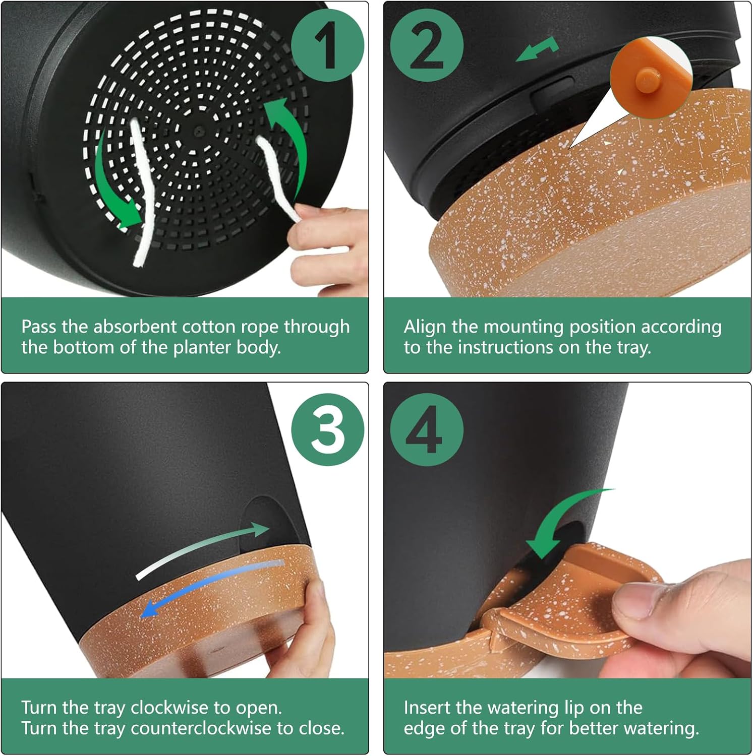 Self Watering Planters Plant Pots Indoor Flower Planting PotsP For Houseplants, African Violet, Flowers, Succulent,Cactus Outdoor Plant Pots with Drainage Holes Black Pots Gift Idea For Lazy people