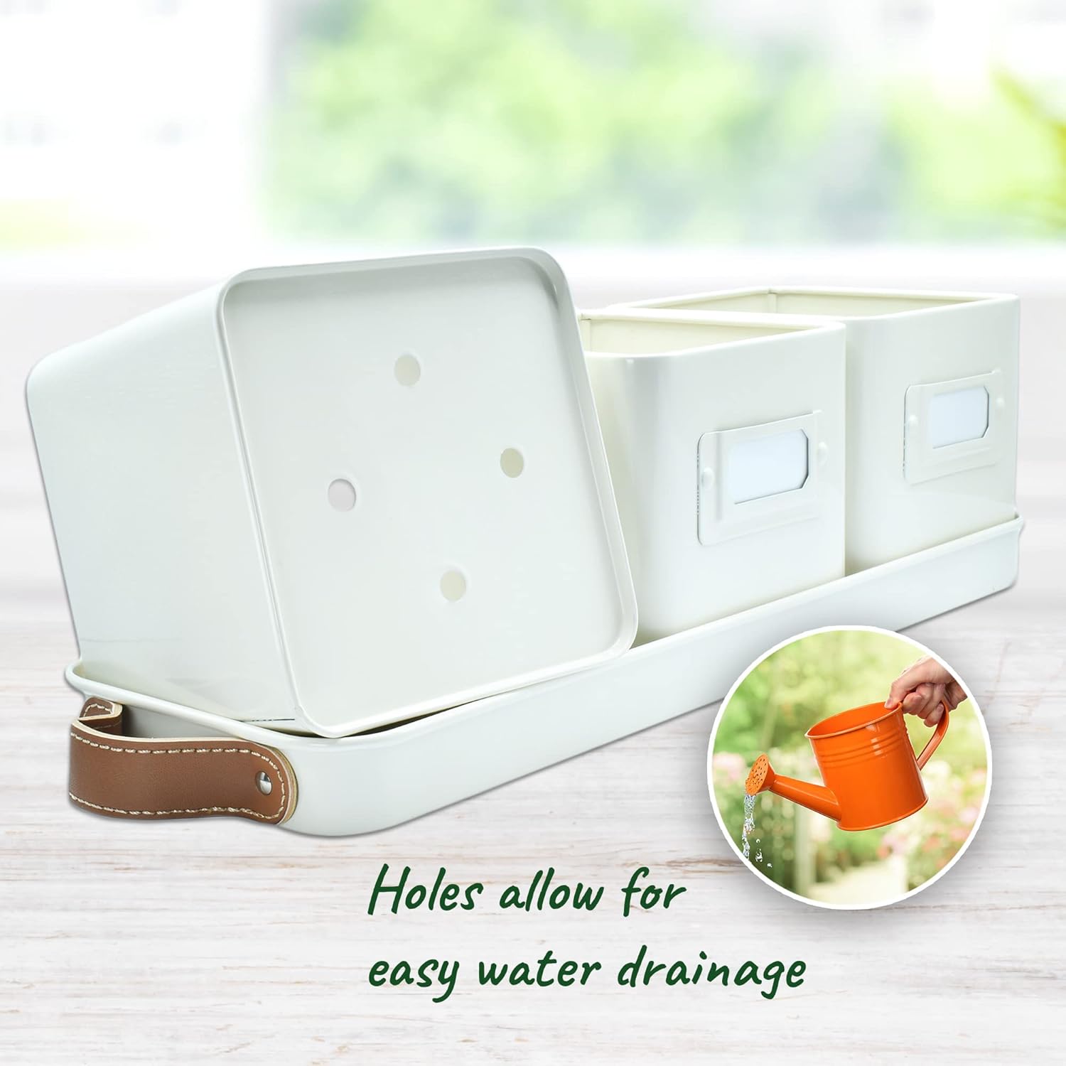 - 🌷 【 Tray Included 】The tray of the herb pot serves as a protective barrier, preventing water from damaging surfaces like windowsills or countertops. It also helps contain any excess water that drains from the pots for herbs, keeping your indoor area clean.