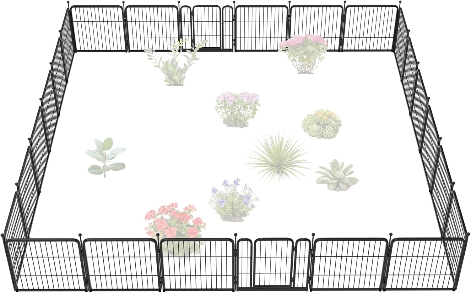 FXW Garden Fence Outdoor for The Yard – 24in(H) x 45.6ft(L) Heavy Duty Metal Animal Barrier for Dog and Rabbit, Decorative Dog Fence, 24 Panels, Black