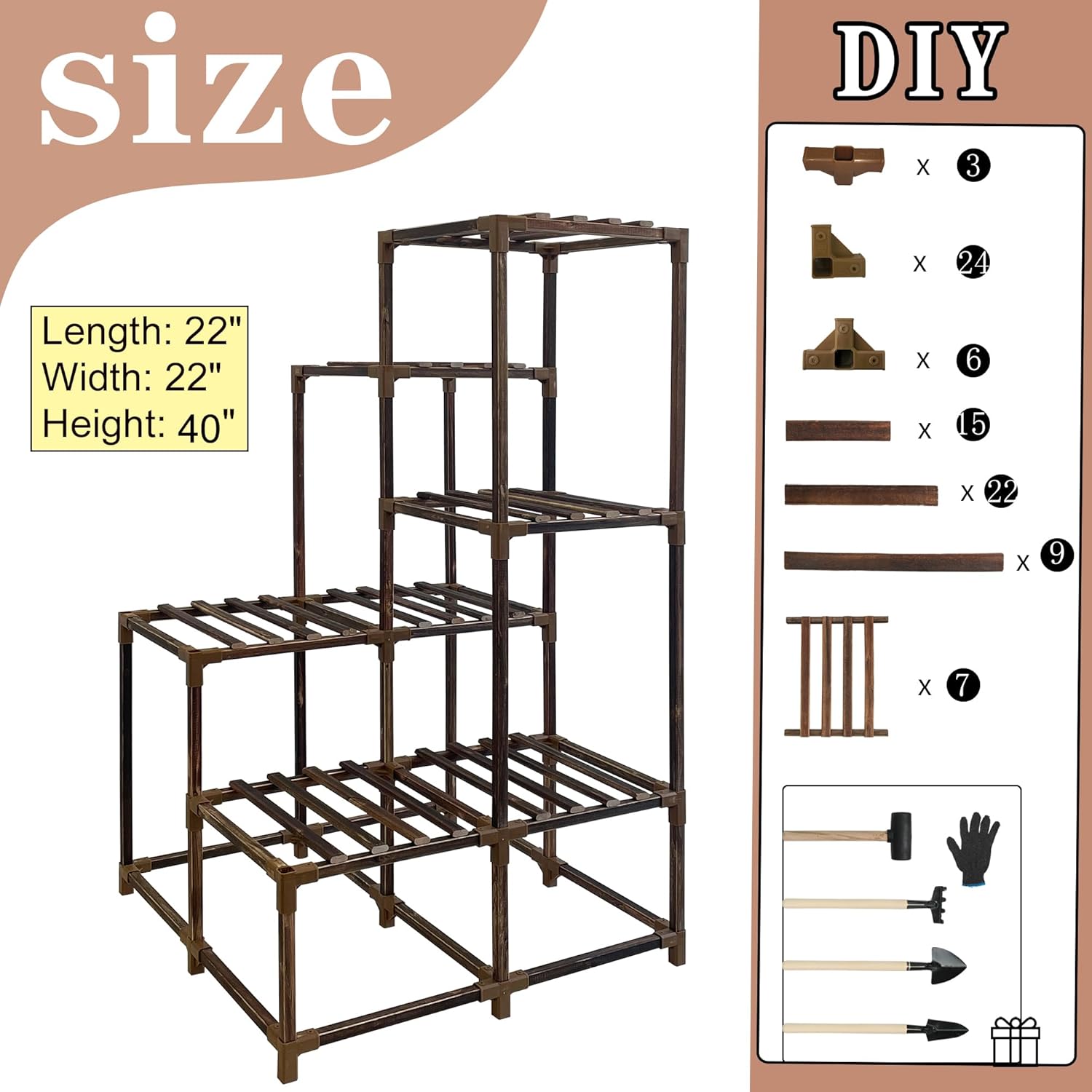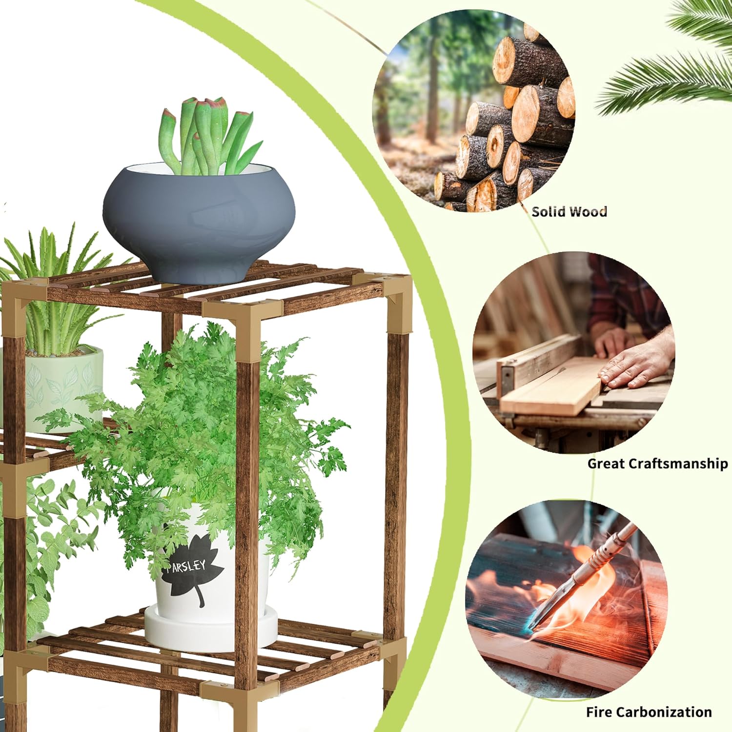 - Durable Material: HOMKIRT plant stands are made of solid wood, shelves are carbonized at 600℉ high temperature, making them have a nice stained look, can be indoors or outdoors on sunny or cloudy days.