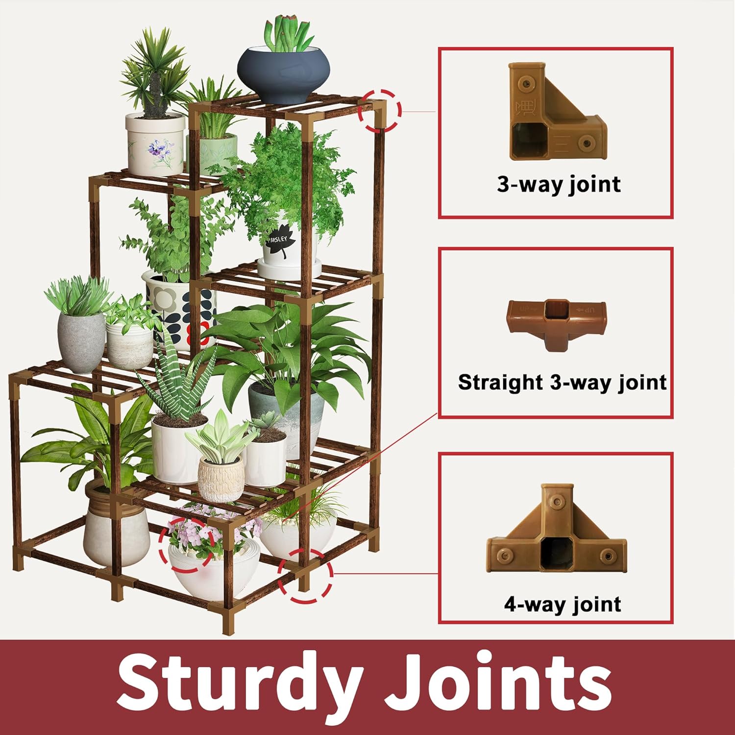 - Large Capacity: The indoor plant stand has 11 tiers which can hold multiple small and medium sized pots, and various heights on the shelf spacing to accommodate the plants, giving the growing plant assortment room to branch out.
