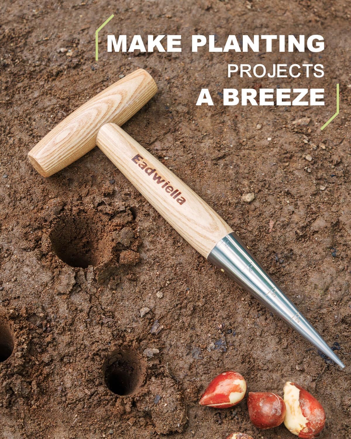 - READY FOR THE PLANTING SEASON - Eadwiella Dibber were designed to make planting bulbs, seeds, and small herbaceous plants easy, by creating the perfect diameter hole to the correct depth. Before using the dibber in your garden make sure the soil is well tilled as it will make using your garden dibber easier. Simply press the dibber into the soil while twisting it back and forth until the dibber is at the desired depth. Now you’re ready to plant your bulb or seed!